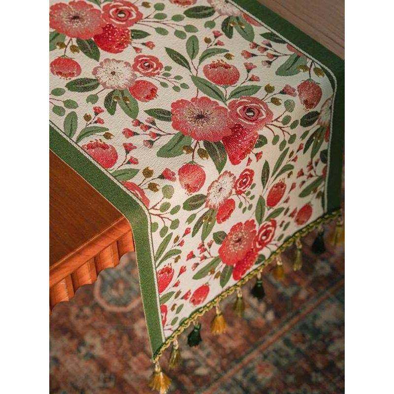 桌旗8517餐桌布斗柜刺盖布电复视柜茶几旗装饰桌布长条美式古绣感