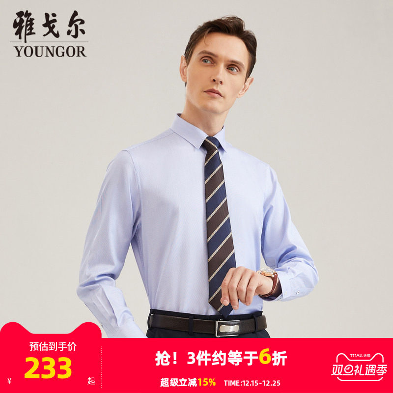 雅戈尔男士长袖衬衫秋冬新款官方商务休闲上班穿长袖衬衫男