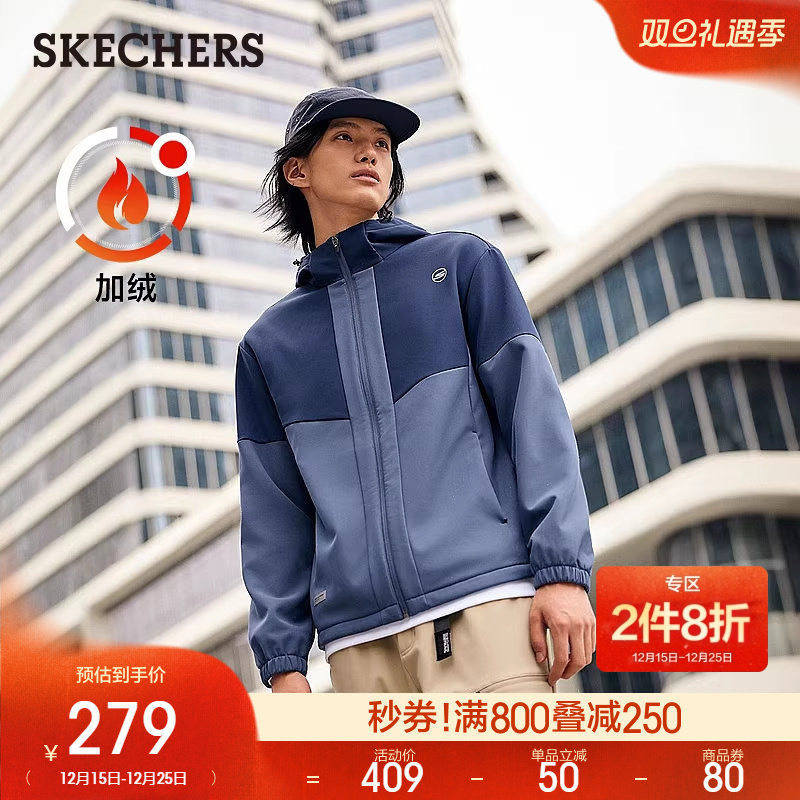 Skechers斯凯奇冬季男士梭织连帽外套保暖加绒舒适百搭运动上衣