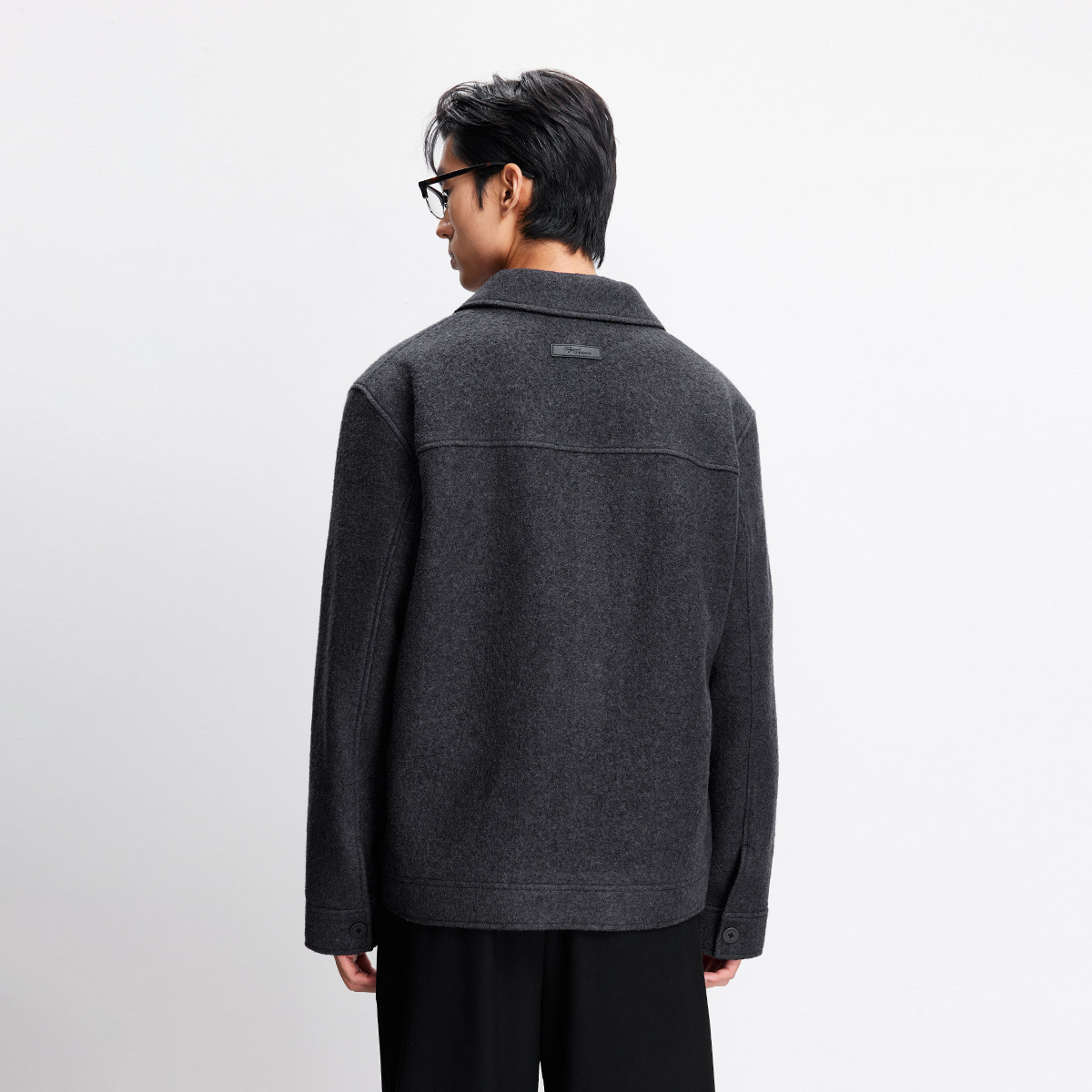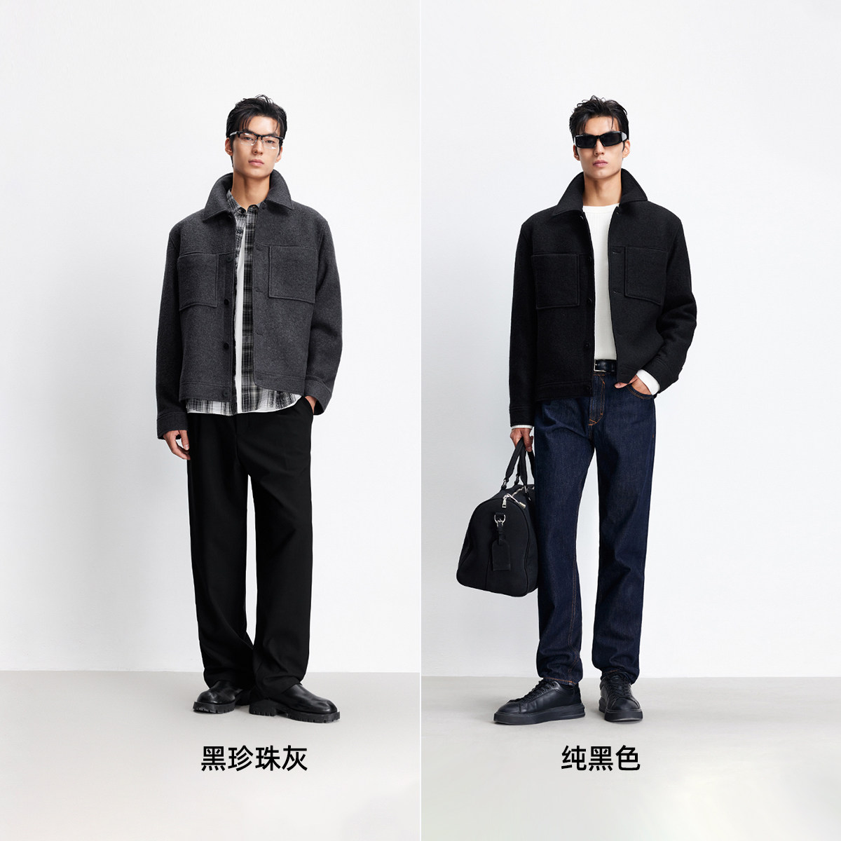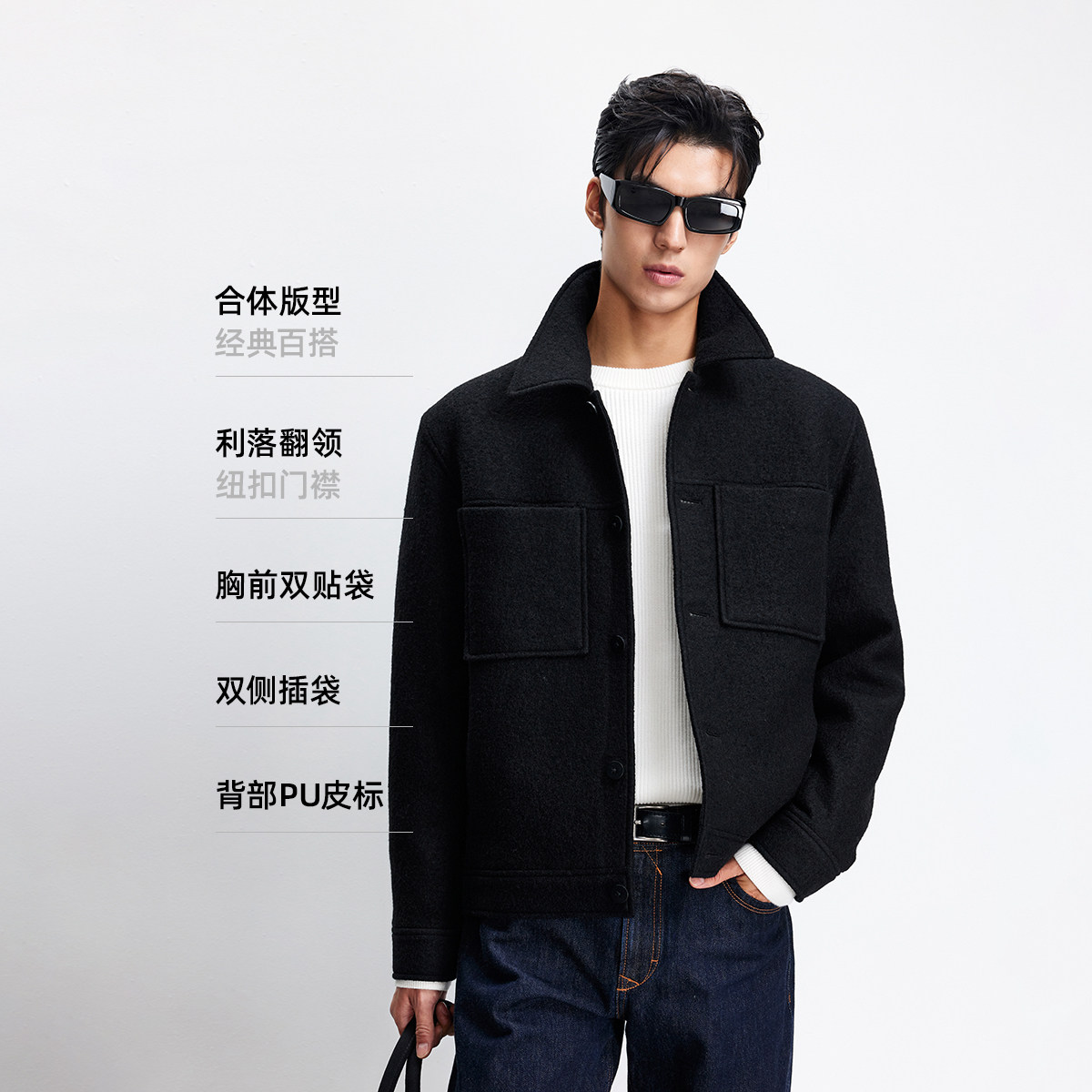 森马毛呢外套男冬季短款呢大衣不规则衬衫式翻领上衣复古时尚百搭
