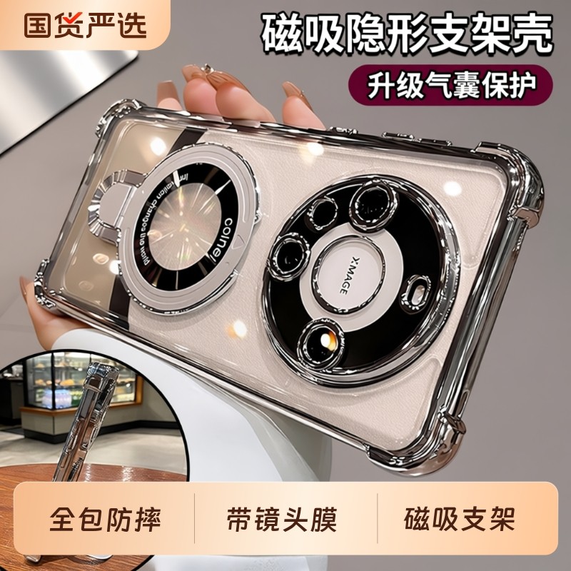 手机壳带支架适用华为mate70mate60pro新款透明气囊mate40pro高级感mt50镜头全包防摔外壳pro+男por磁吸女套3