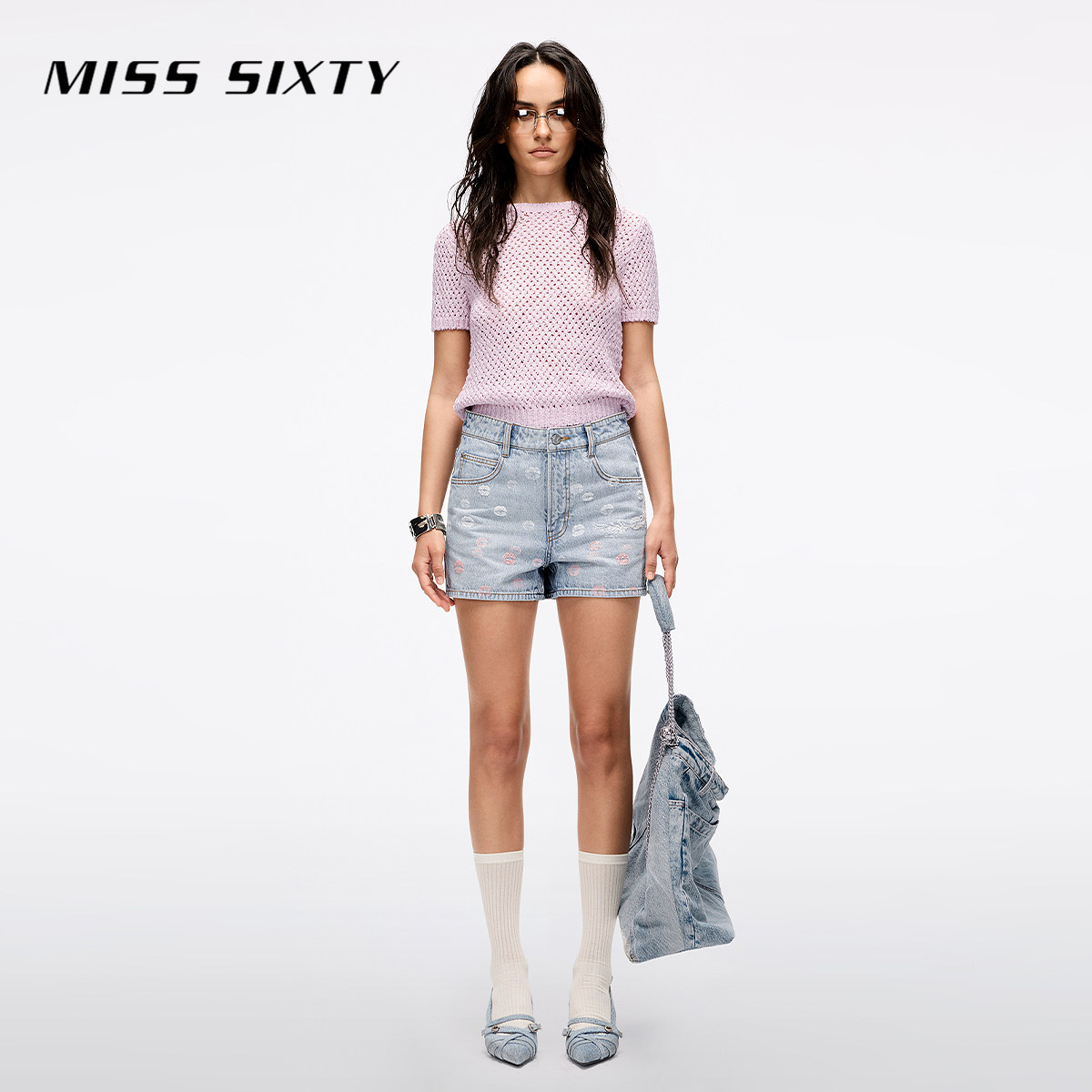【天使系列】Miss Sixty25春秋新款牛仔短裤女重工低腰直筒裤