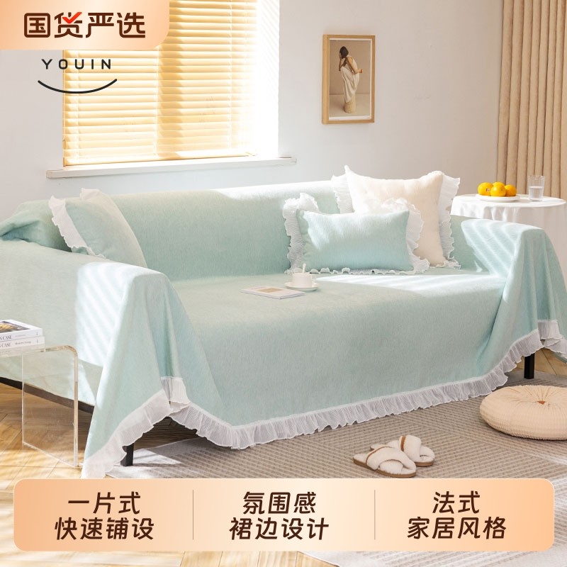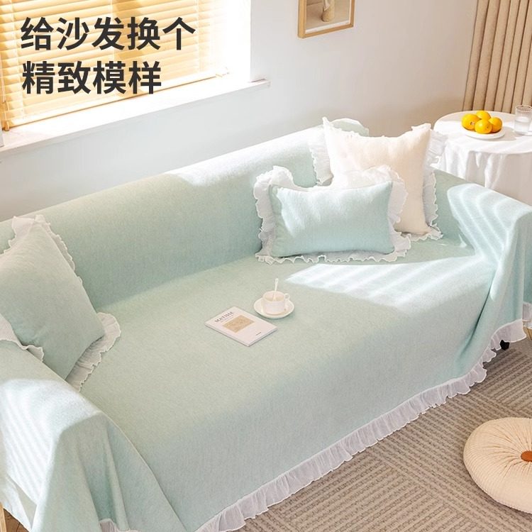 法式裙边沙发盖布沙发垫四季通用全盖巾纯色沙发套罩防滑坐垫子
