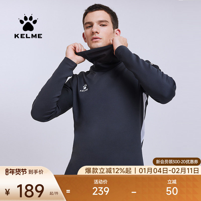 KELME卡尔美足球训练服长袖跑步运动面罩卫衣男新款套头衫上衣
