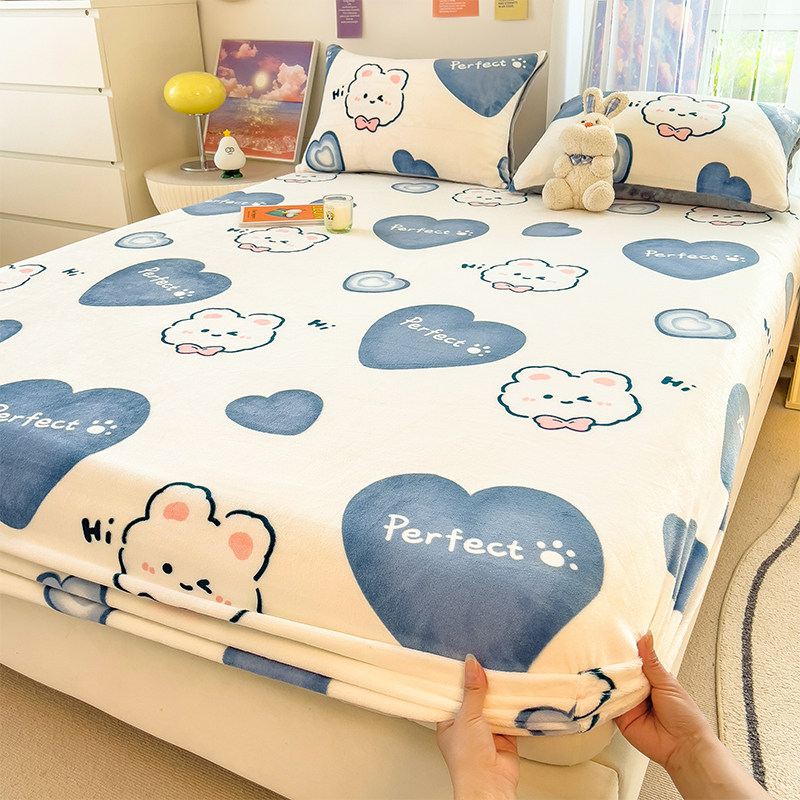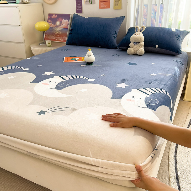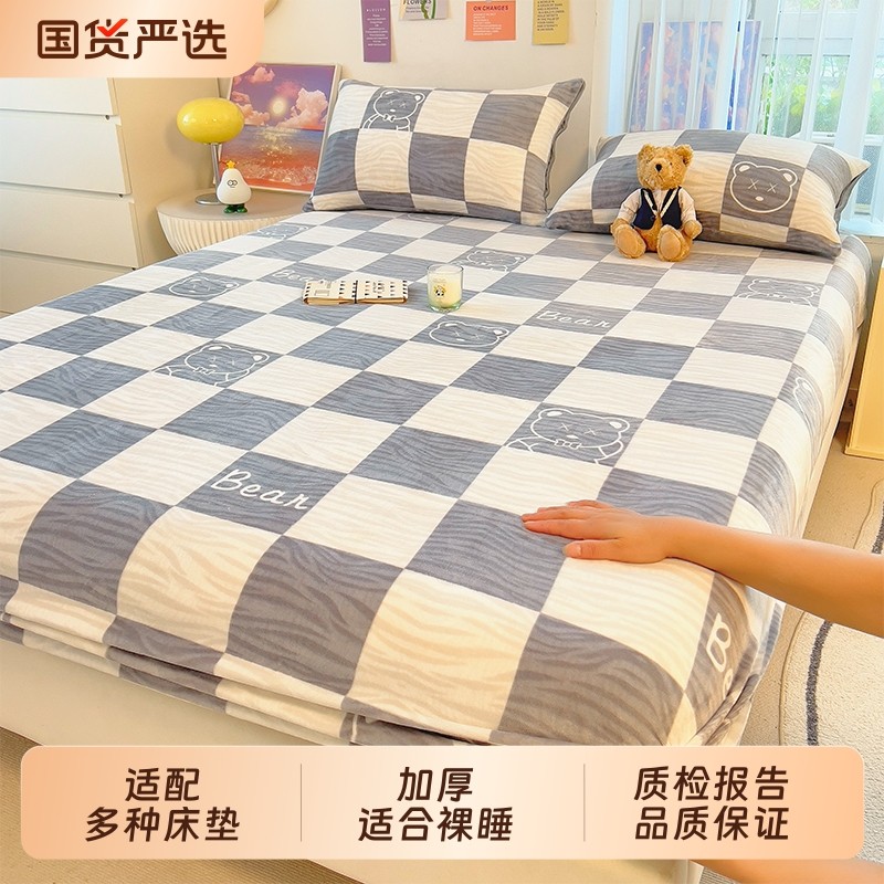 加绒加厚牛奶绒床笠罩冬季2025新款床罩床垫套单双人全包床单枕套