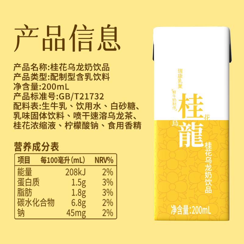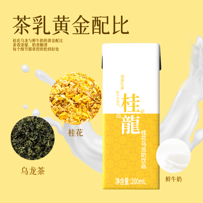 瑞康桂花乌龙牛奶茶饮品早餐奶200ml*10支牛奶饮料牛乳盒装乳业