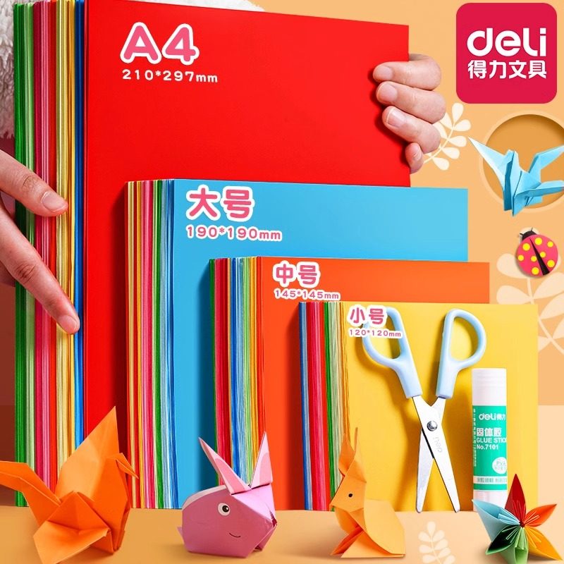 得力折纸彩纸手工儿童制作材料手工折纸diy彩色卡纸a4纸小学生幼儿园8K正方形长方形剪纸千纸鹤美术专用纸