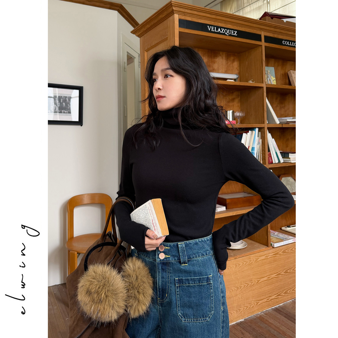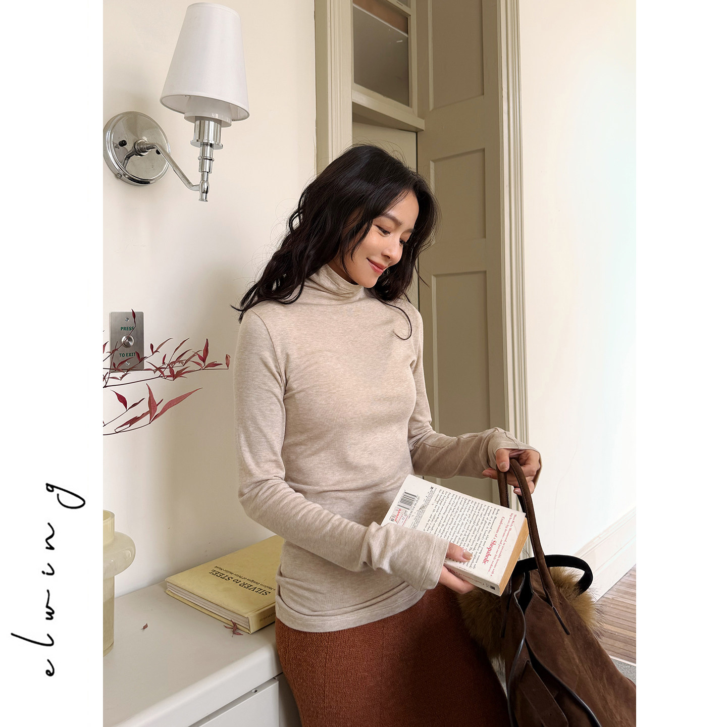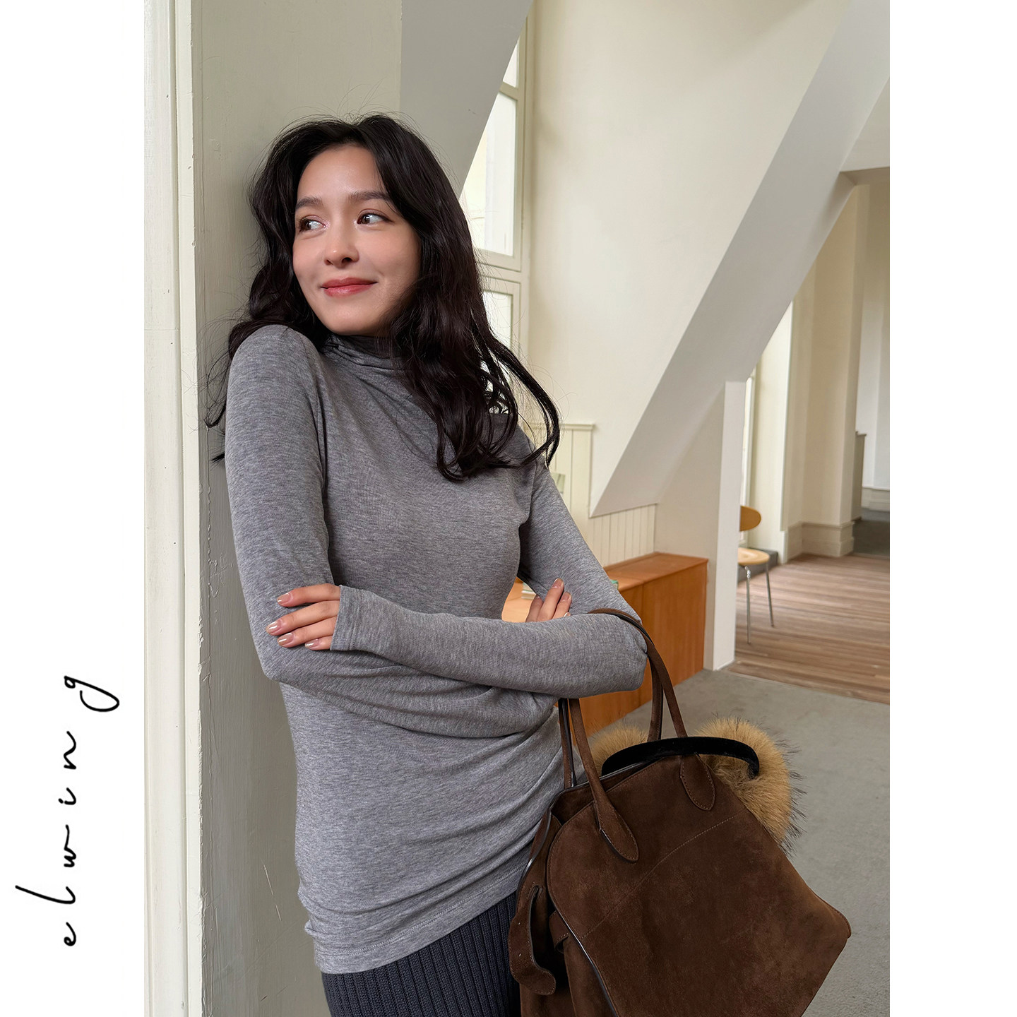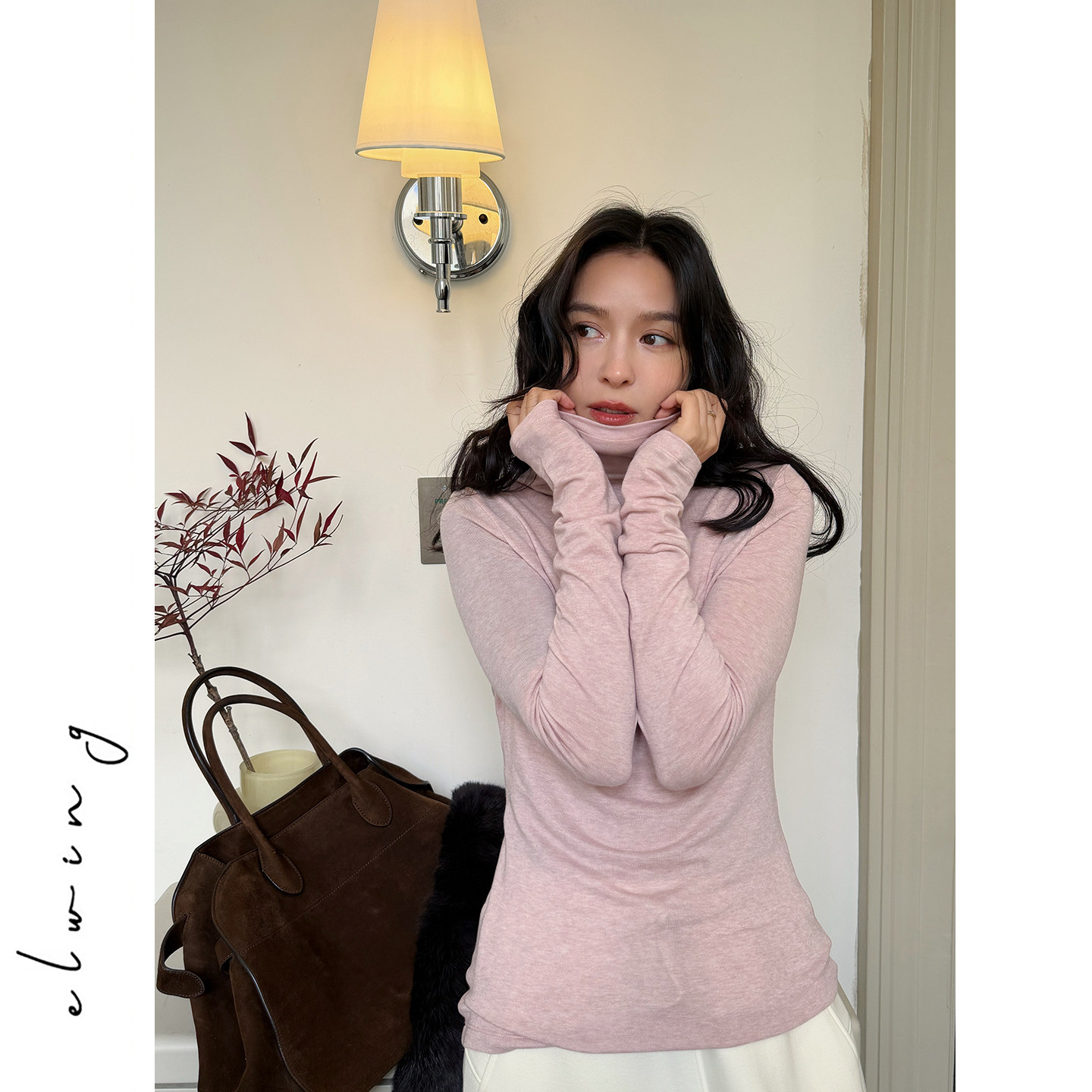 Elwing原创莱赛尔羊毛极简纯色针织衫高领修身长袖秋冬保暖打底衫