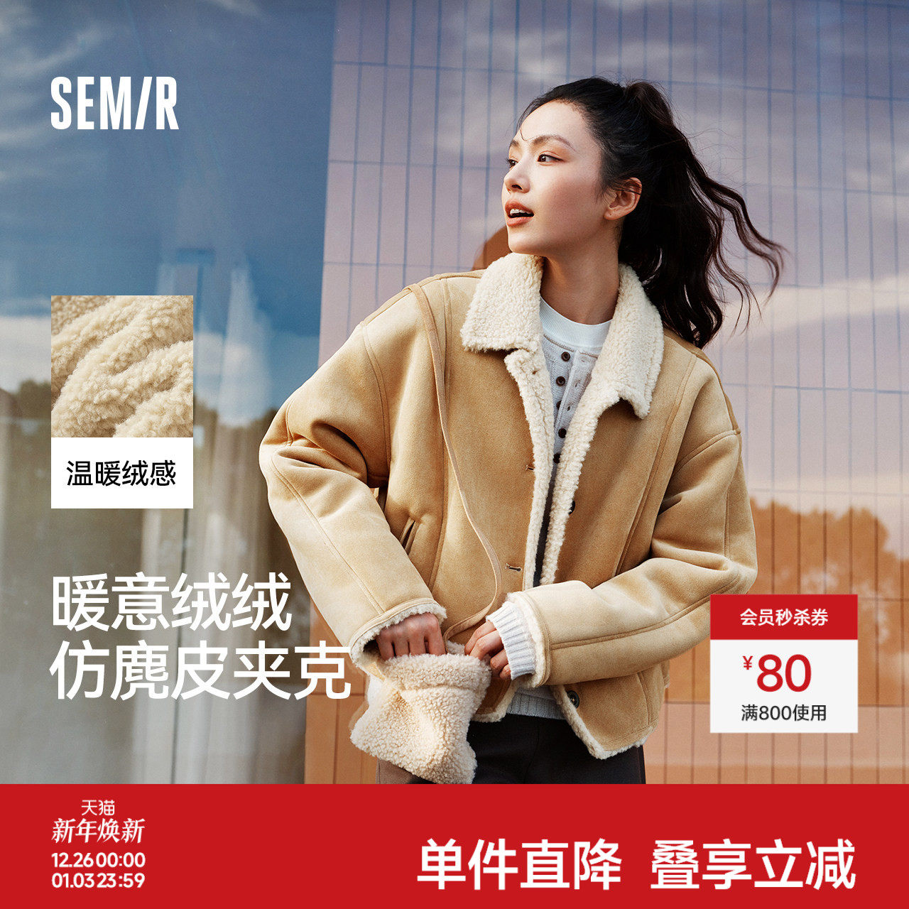 森马外套女冬季斜挎包分割仿麂皮仿羊羔毛2025新款巴恩风上衣夹克