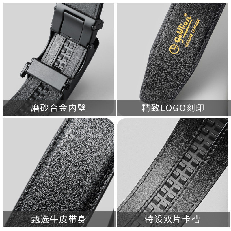 金利来皮具男士新款休闲磨砂头层牛皮皮带商务立体精雕logo男腰带