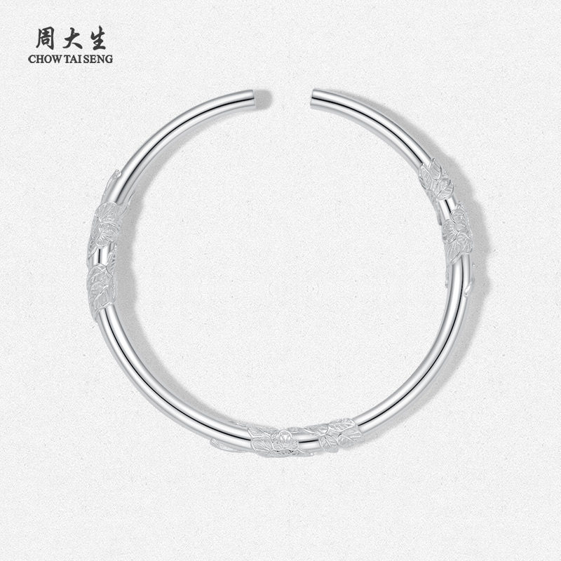 周大生手镯女花丝S990足银镯子送妈妈开口实心镯生日礼物送女友