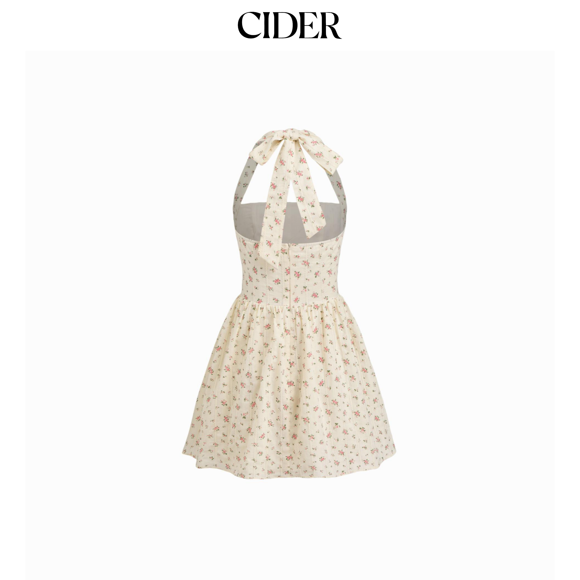 【明星同款】CIDER 正品挂脖碎花荷叶边连衣裙女装114370583