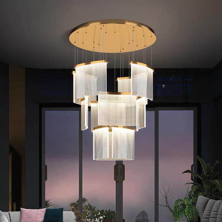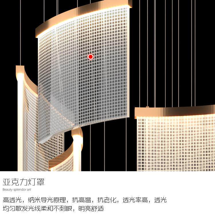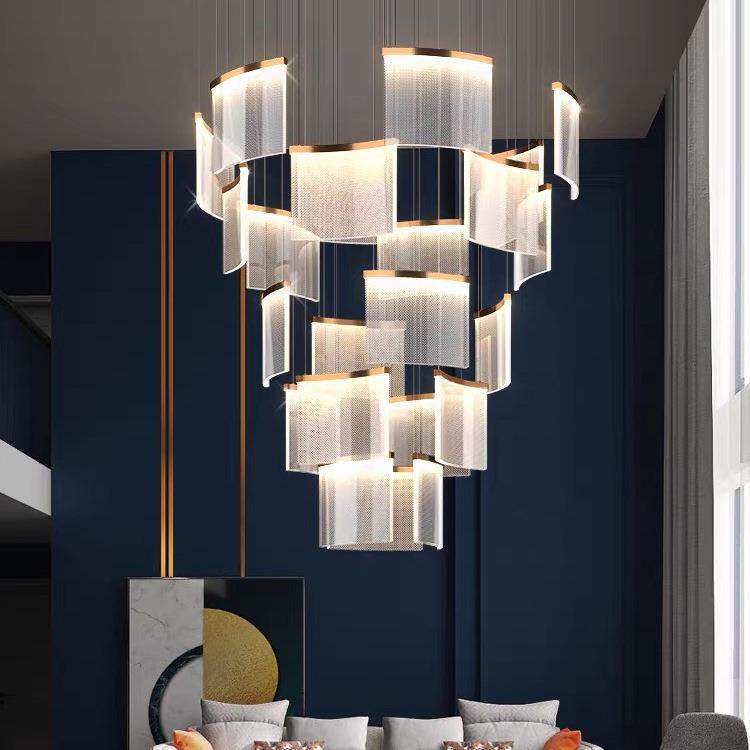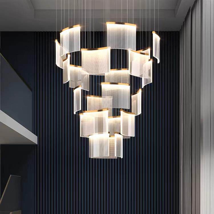 复式楼大吊灯现代简约大气客厅酒店大堂售楼部轻奢瓦片楼梯长吊灯