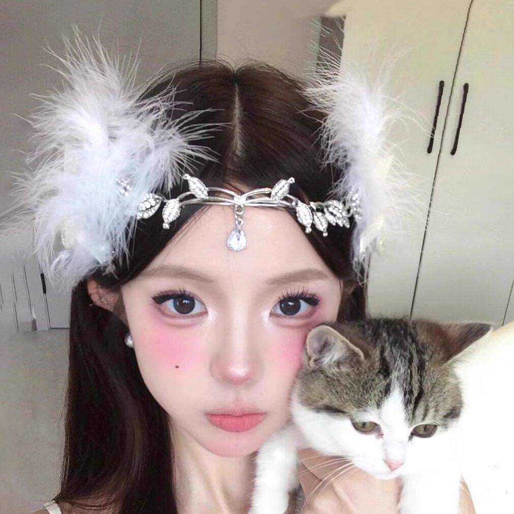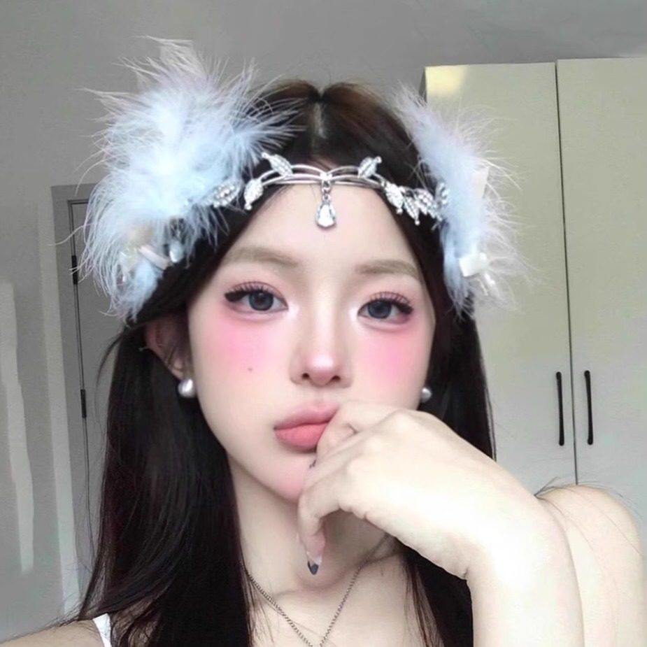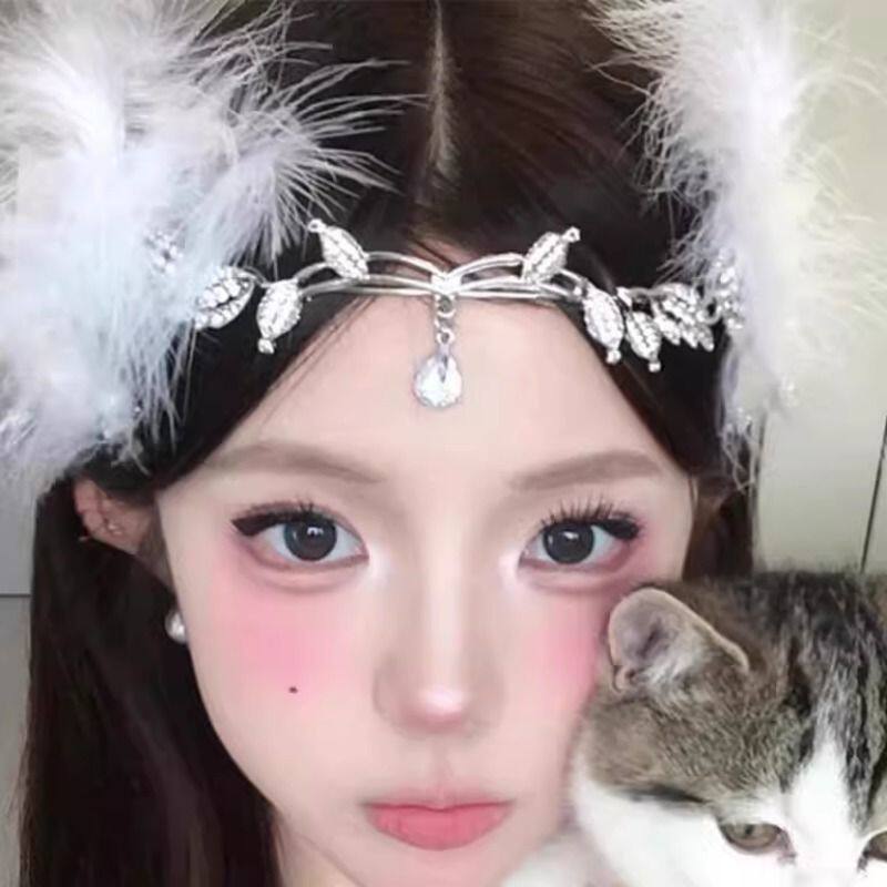 超仙水钻流苏额饰眉心坠羽毛边夹配饰异域民族风精灵新娘拍照发饰