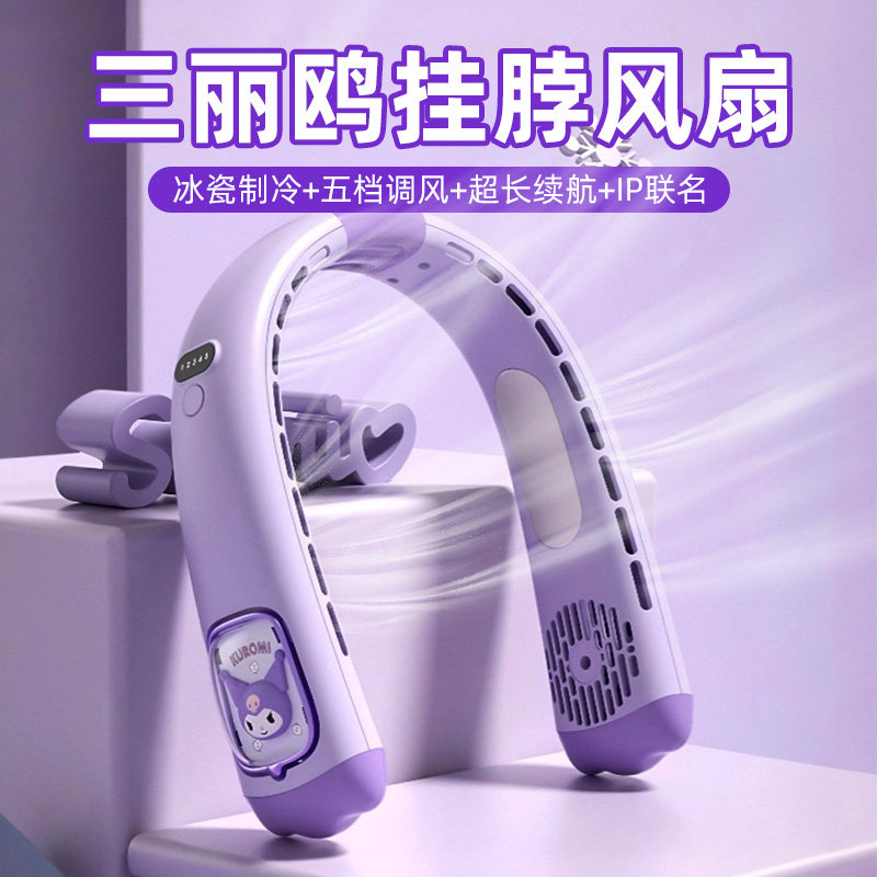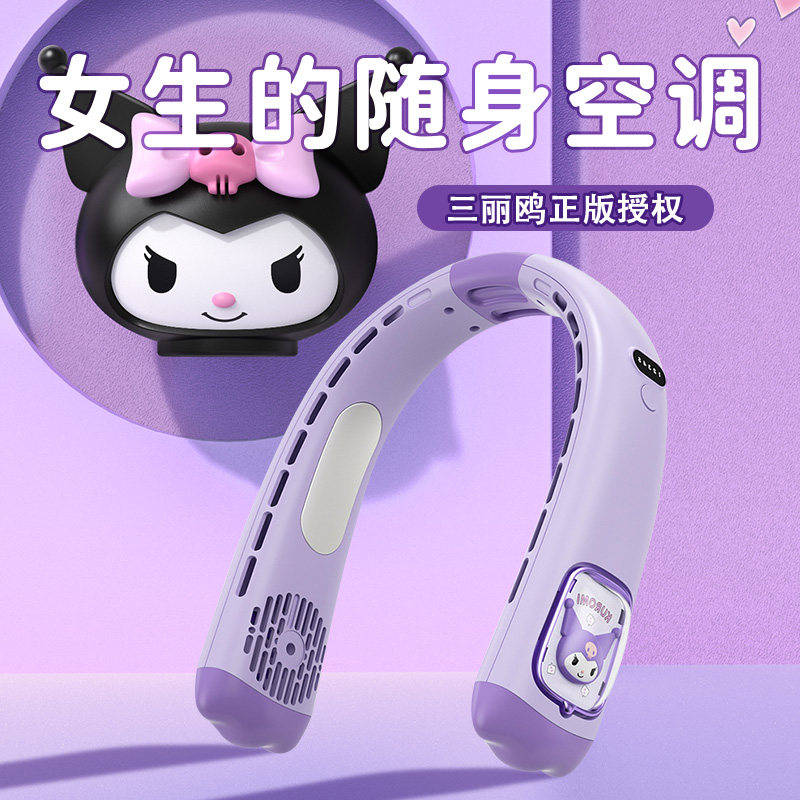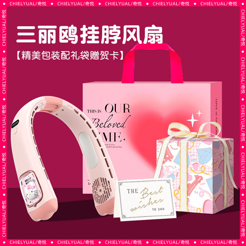 懒人挂脖子小风扇usb可充电迷你手持学生便携式随身可爱户外小型无叶儿童大风力夏天神器HelloKitty生日礼物