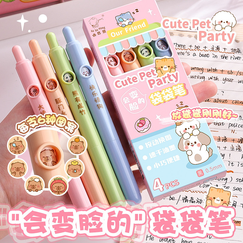 兜兜笔口袋笔迷你短款按动中性笔速干高颜值少女心防摔ST笔尖0.5笔芯顺滑学生考试刷题笔便携可爱创意签字笔