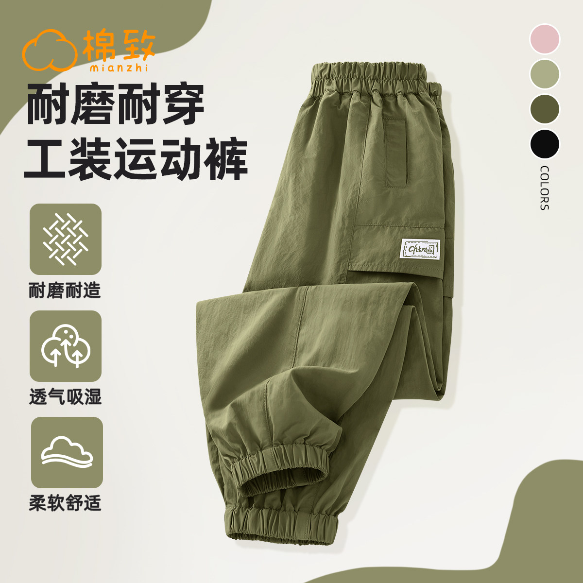 棉致男童裤子工装裤夏季2025新款防蚊裤男大童运动裤薄款儿童夏装