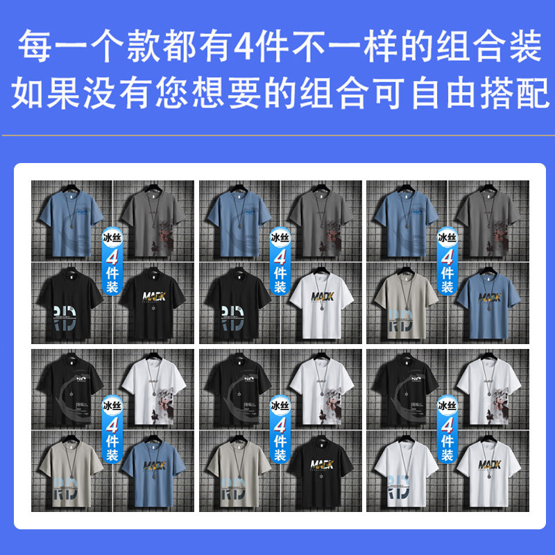 冰丝短袖t恤男2026夏季凉感新款印花半袖打底衫体恤潮牌流行时尚