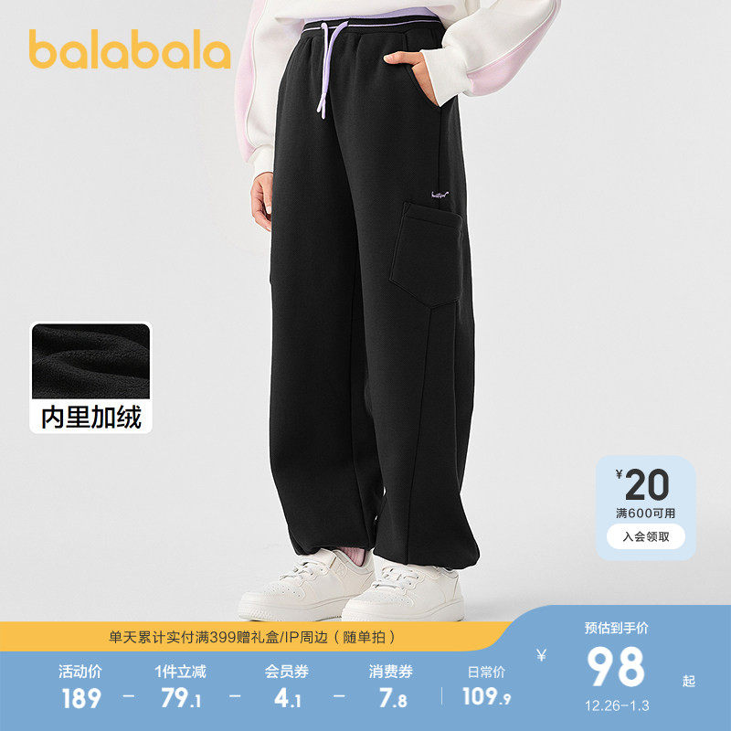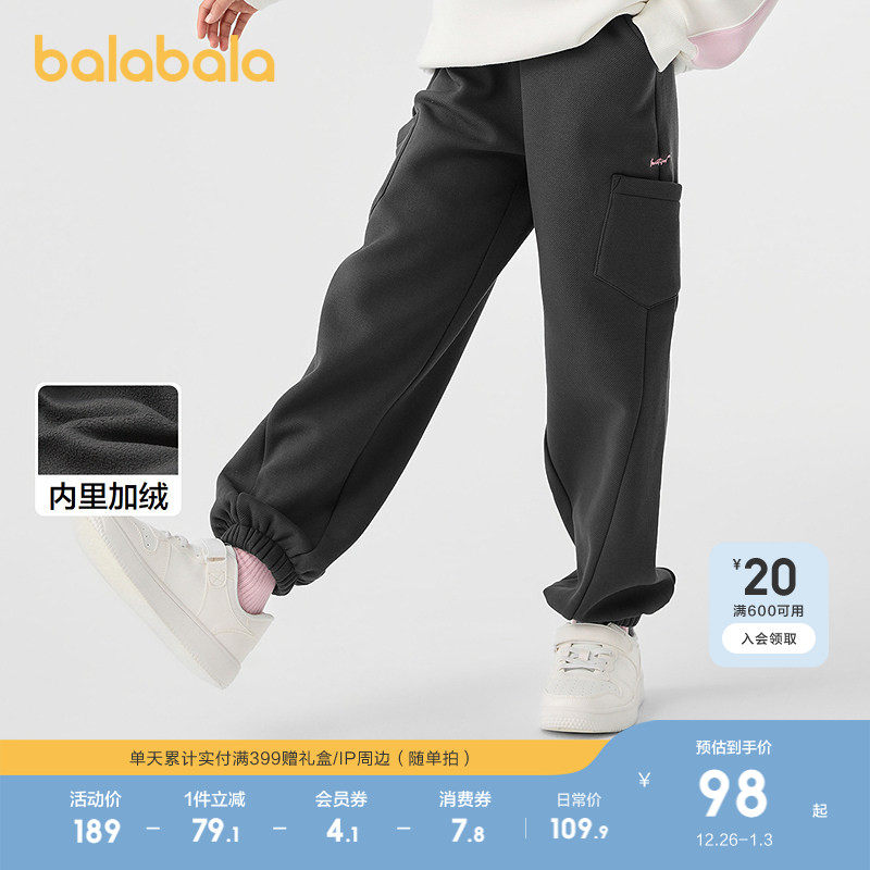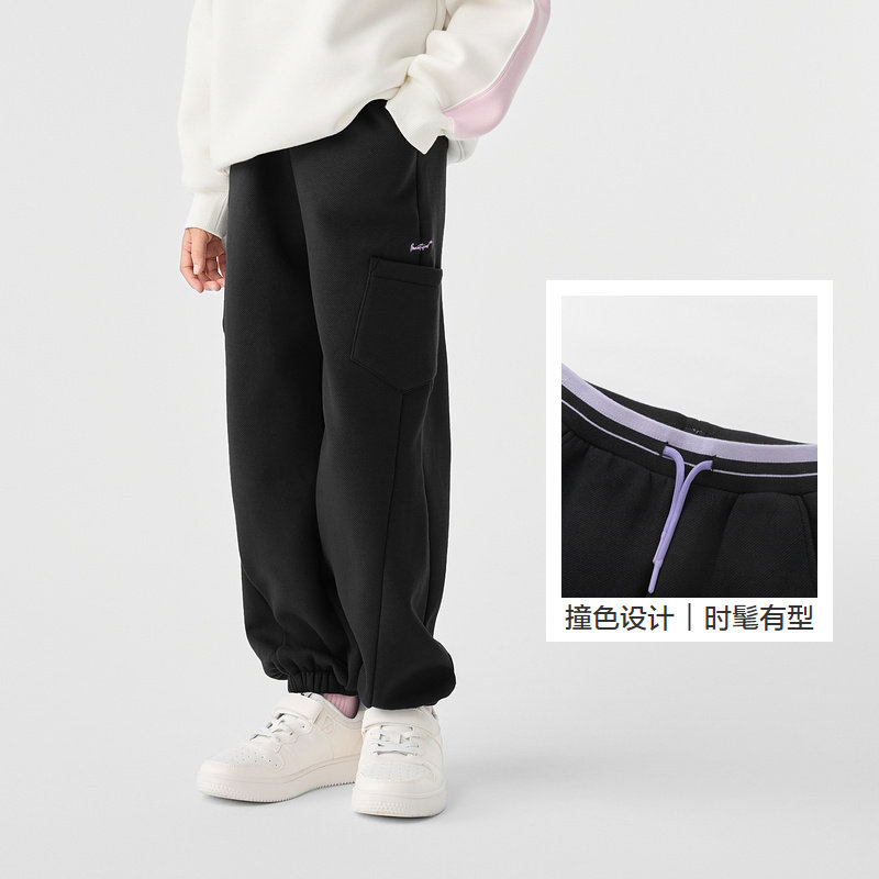 巴拉巴拉童装女童加绒裤子冬装慢跑裤撞色儿童保暖一体绒运动休闲