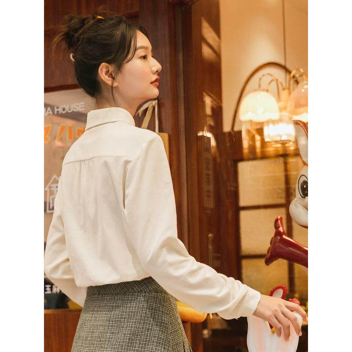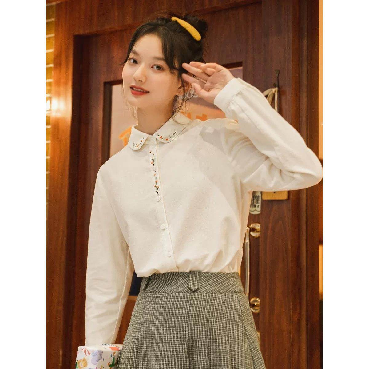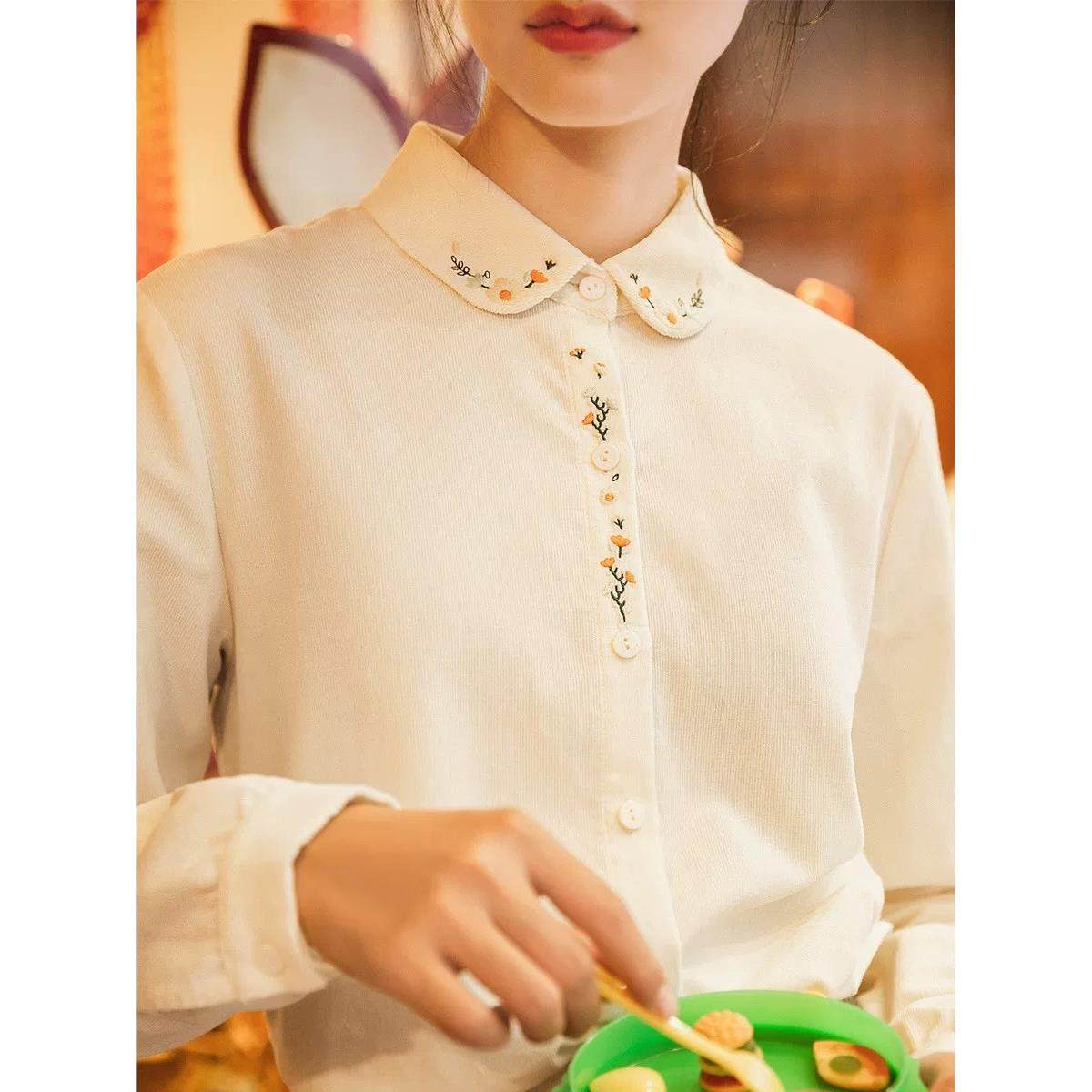 茵家衬衫女外穿百搭2020年冬新款可爱绣花衬衣纯棉灯芯绒长袖上衣