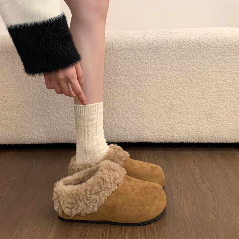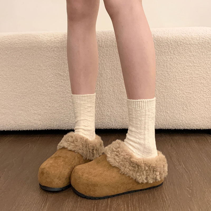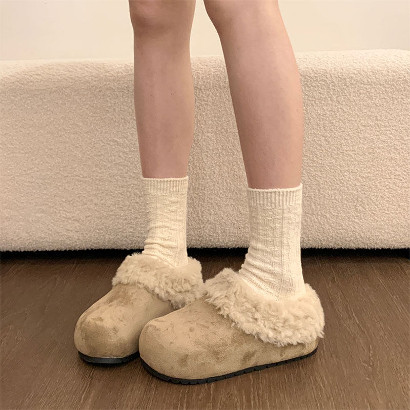 低帮厚底雪地靴女2025新款冬季懒人一脚蹬毛毛棉鞋加绒加厚女鞋子