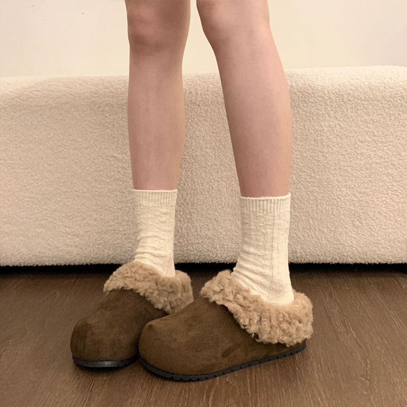 内增高厚底加绒勃肯鞋雪地靴棉拖鞋女外穿2025新款冬季毛毛半拖鞋