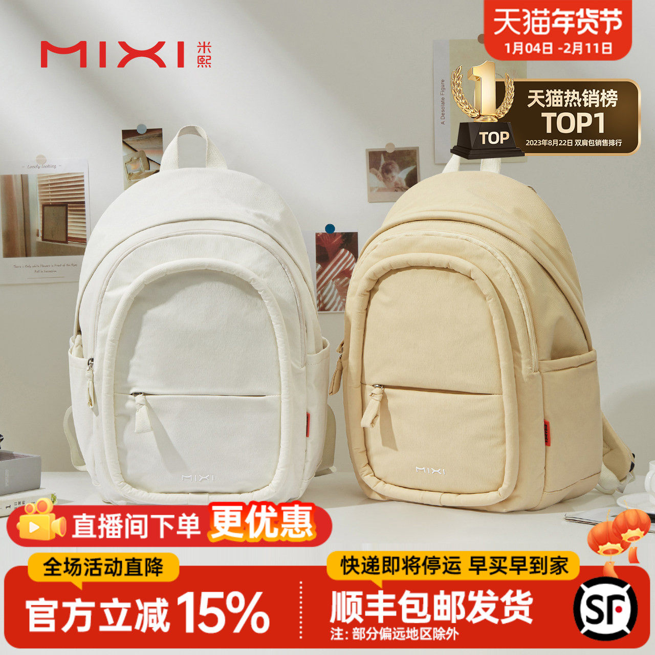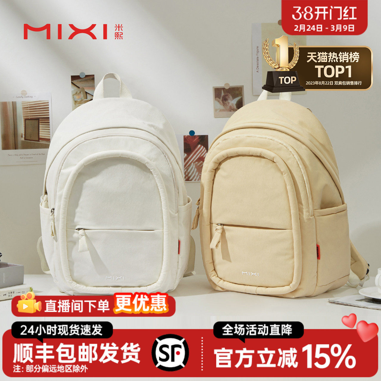 米熙双肩包2025新款女生大学生书包大容量电脑包运动旅行背包男