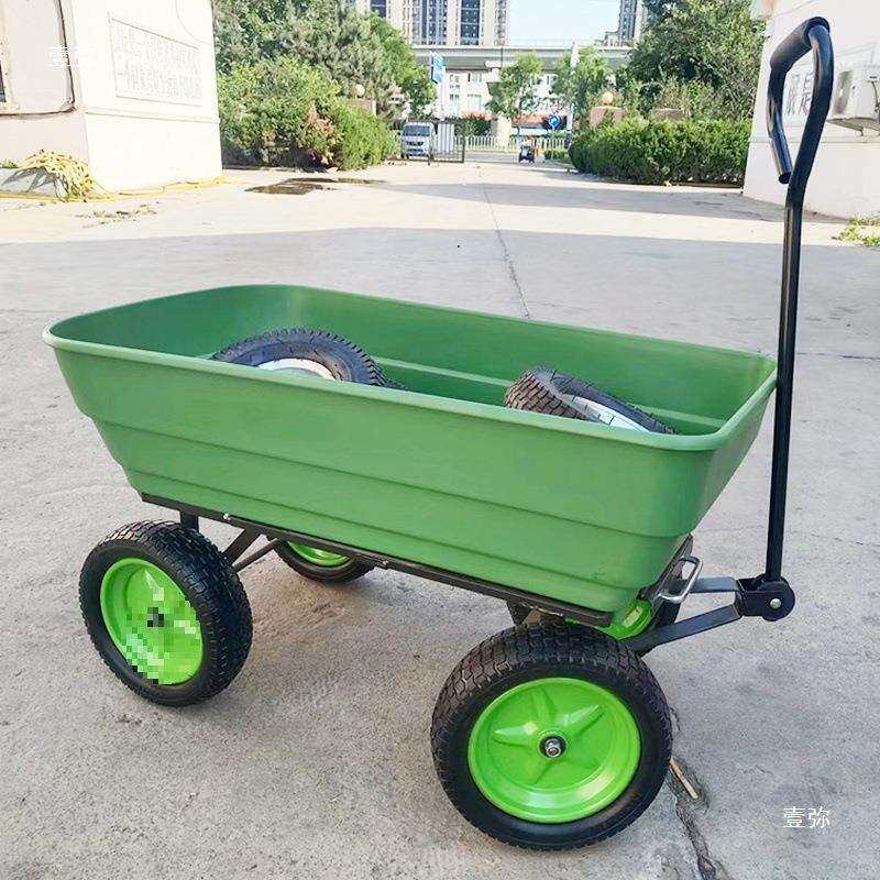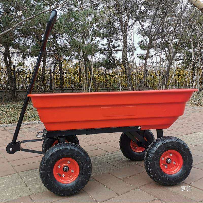 四轮塑料翻斗车牵引手拖车露营摆摊小推车拉货花园家用轻便搬运车