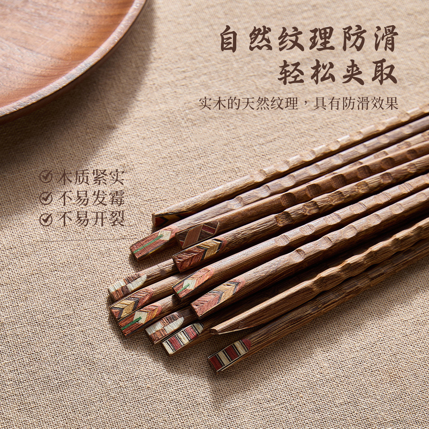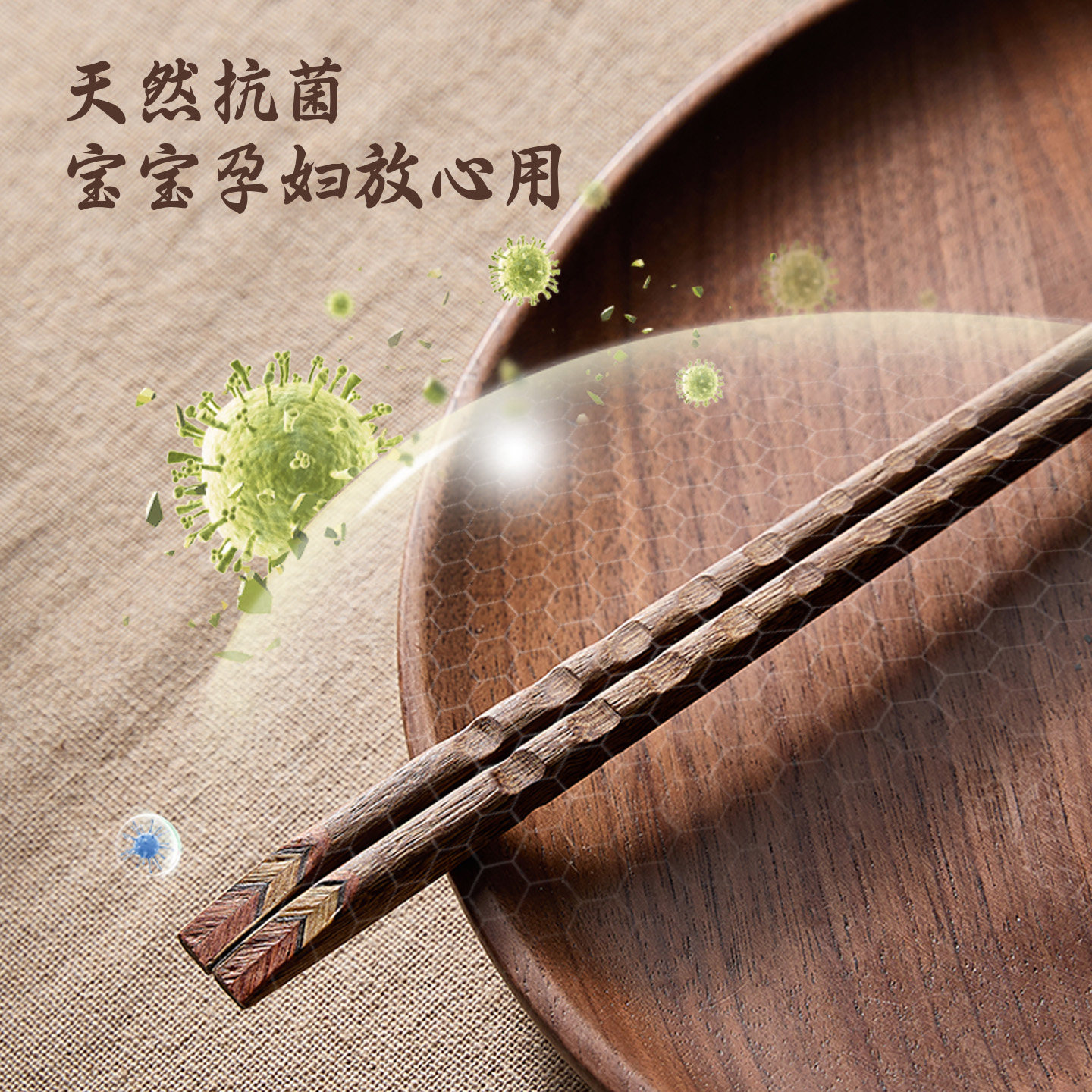 唐宗筷鸡翅木筷子家用新款无漆无蜡防霉抗菌中式实木筷可进洗碗机