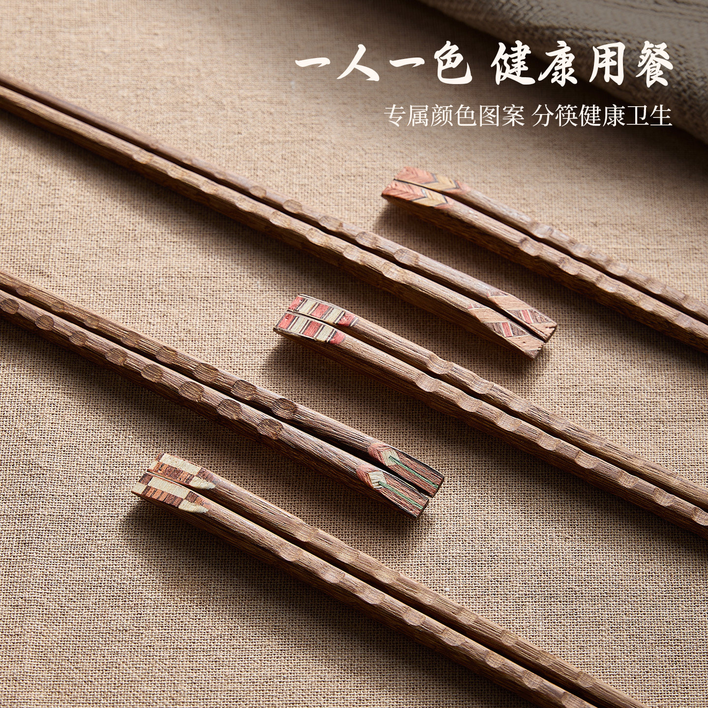 筷子家用高档耐高温竹木筷成人防霉防滑一人一筷分色家庭卫生餐具