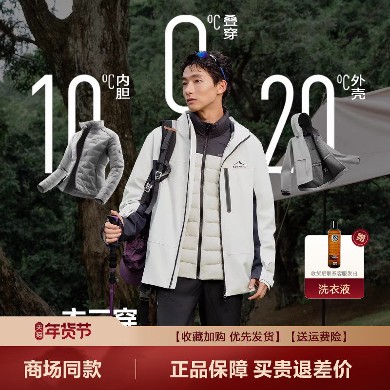 波司登羽绒服男秋冬叠变三合一冲锋衣情侣鹅绒外套户外骑行登山