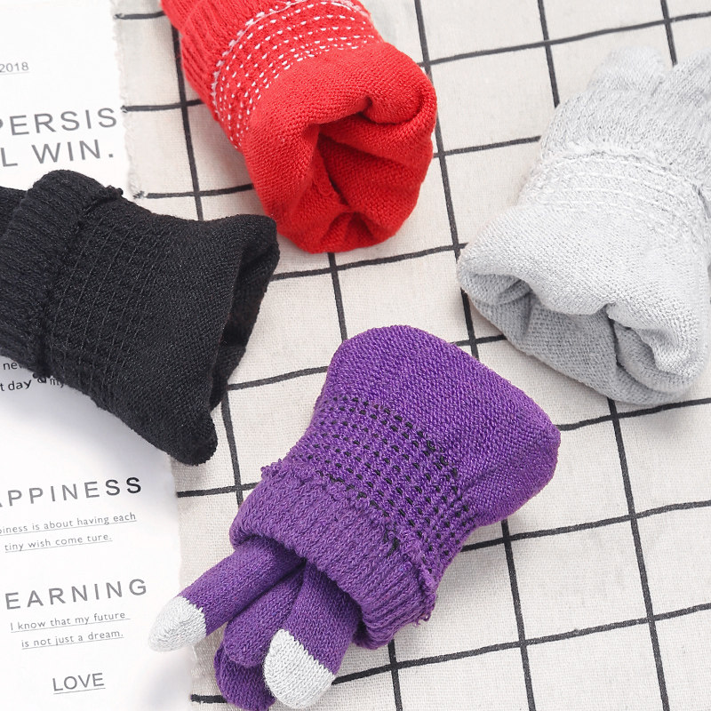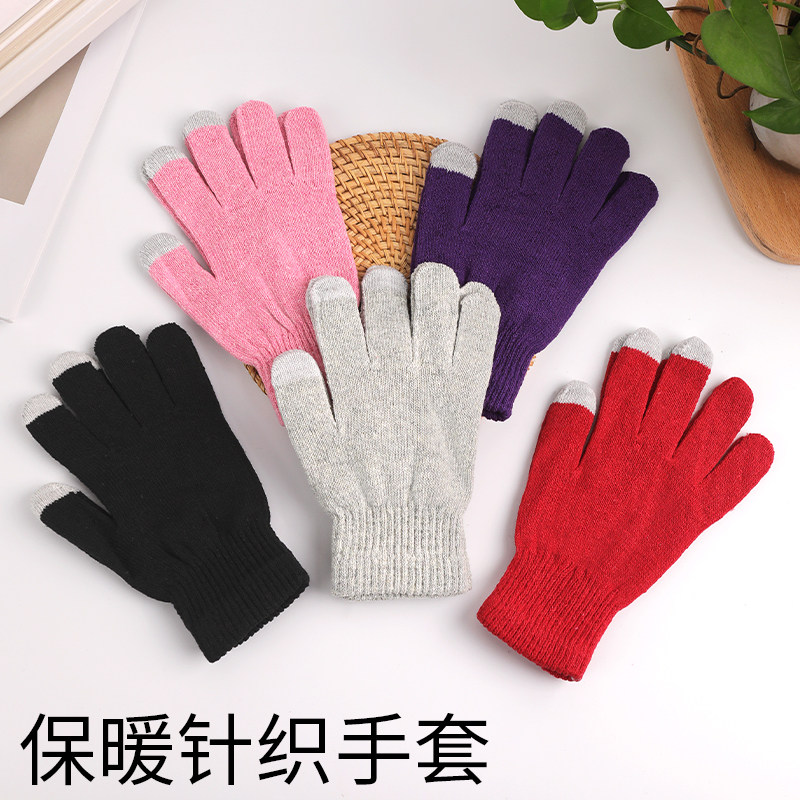 触屏手套秋冬薄款针织毛线男女户外保暖魔术弹力手套