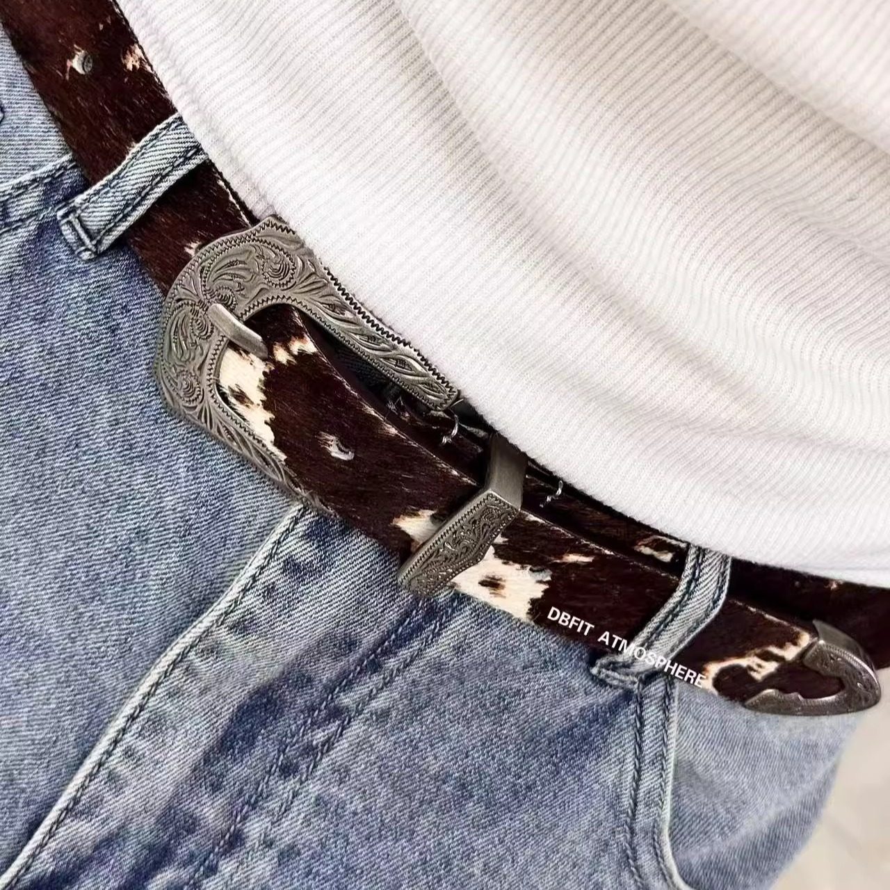 DBFIT复古纯手工真马毛帝王3.0牛皮痞帅做旧镀银扣皮带腰带男女款