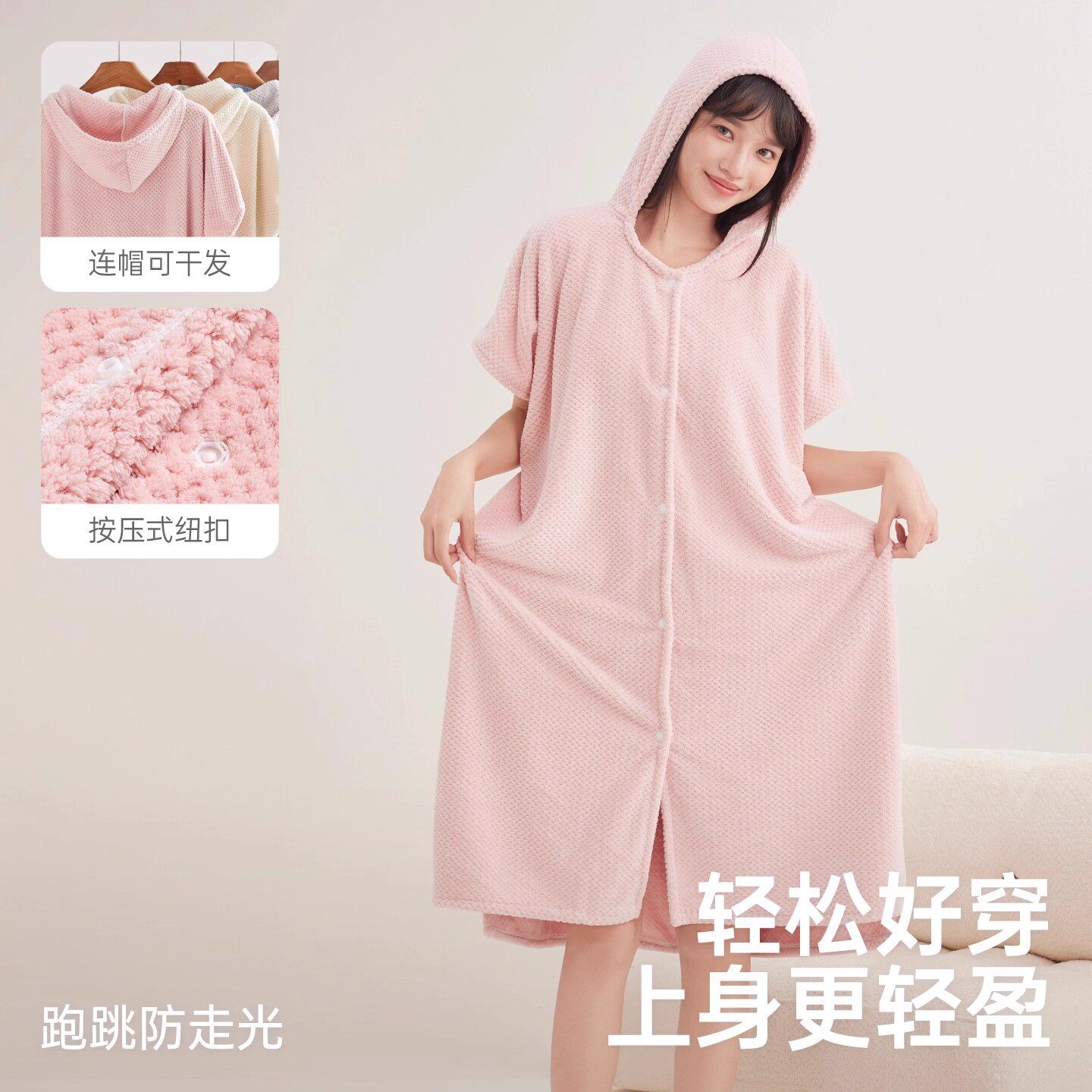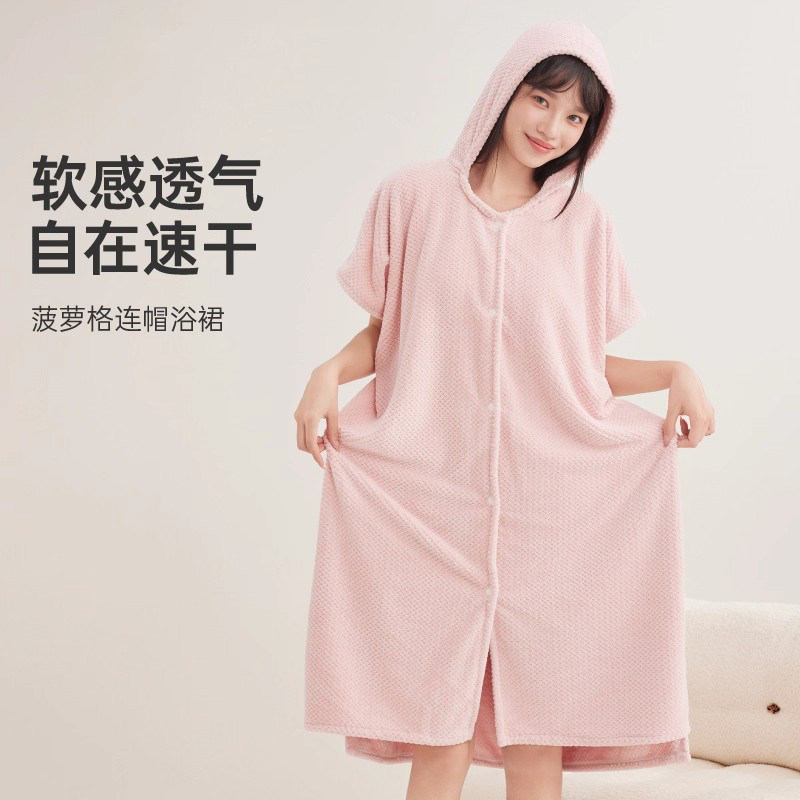 三利可穿式浴巾浴袍速干女家用厚连帽非纯棉浴裙浴衣2025新款裹巾