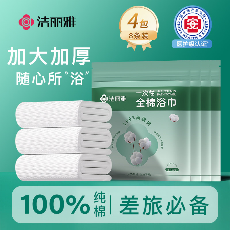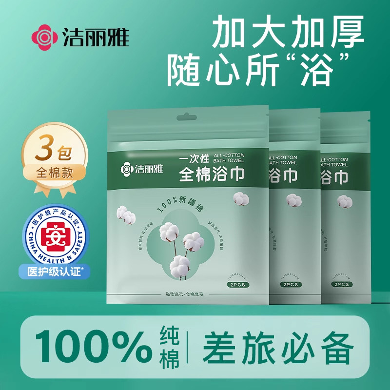 洁丽雅一次性浴巾纯棉旅行单包独装100%全棉加大加厚酒店旅游用品