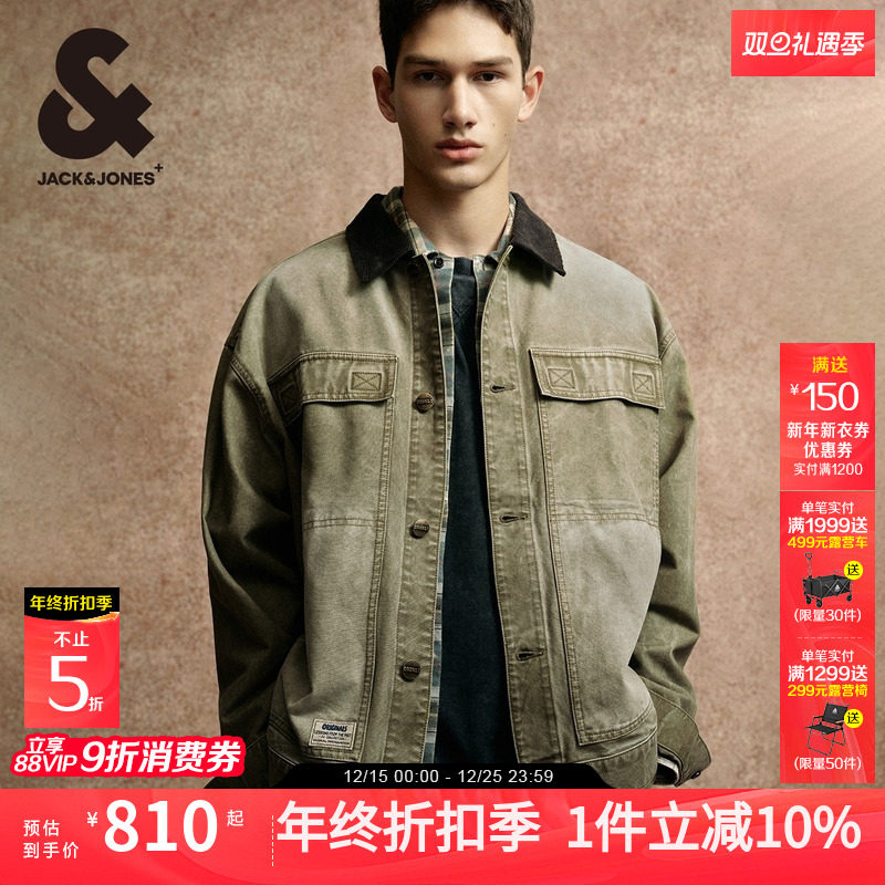 杰克琼斯男装春秋季简约25年休闲宽松翻领多口袋水洗牛仔夹克外套