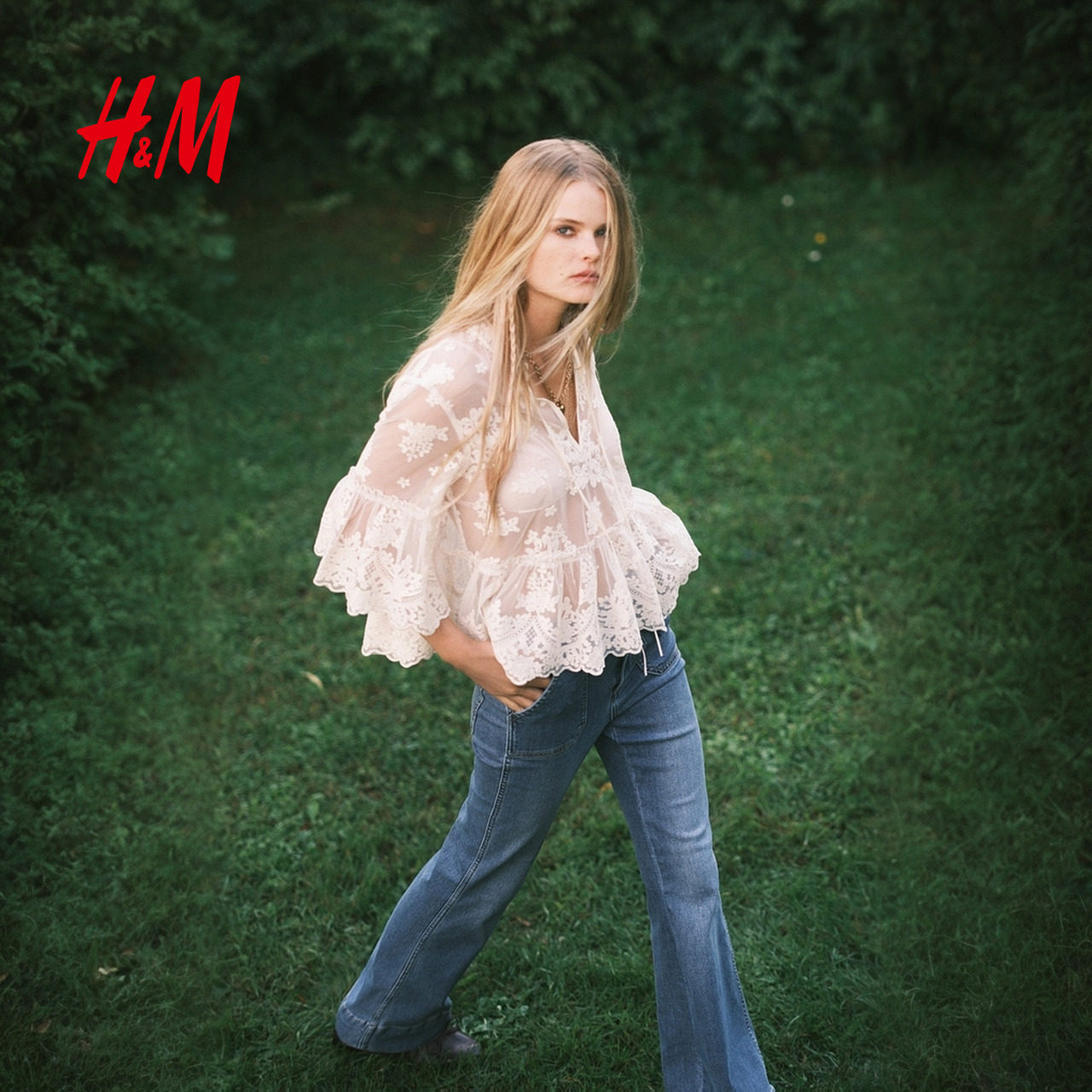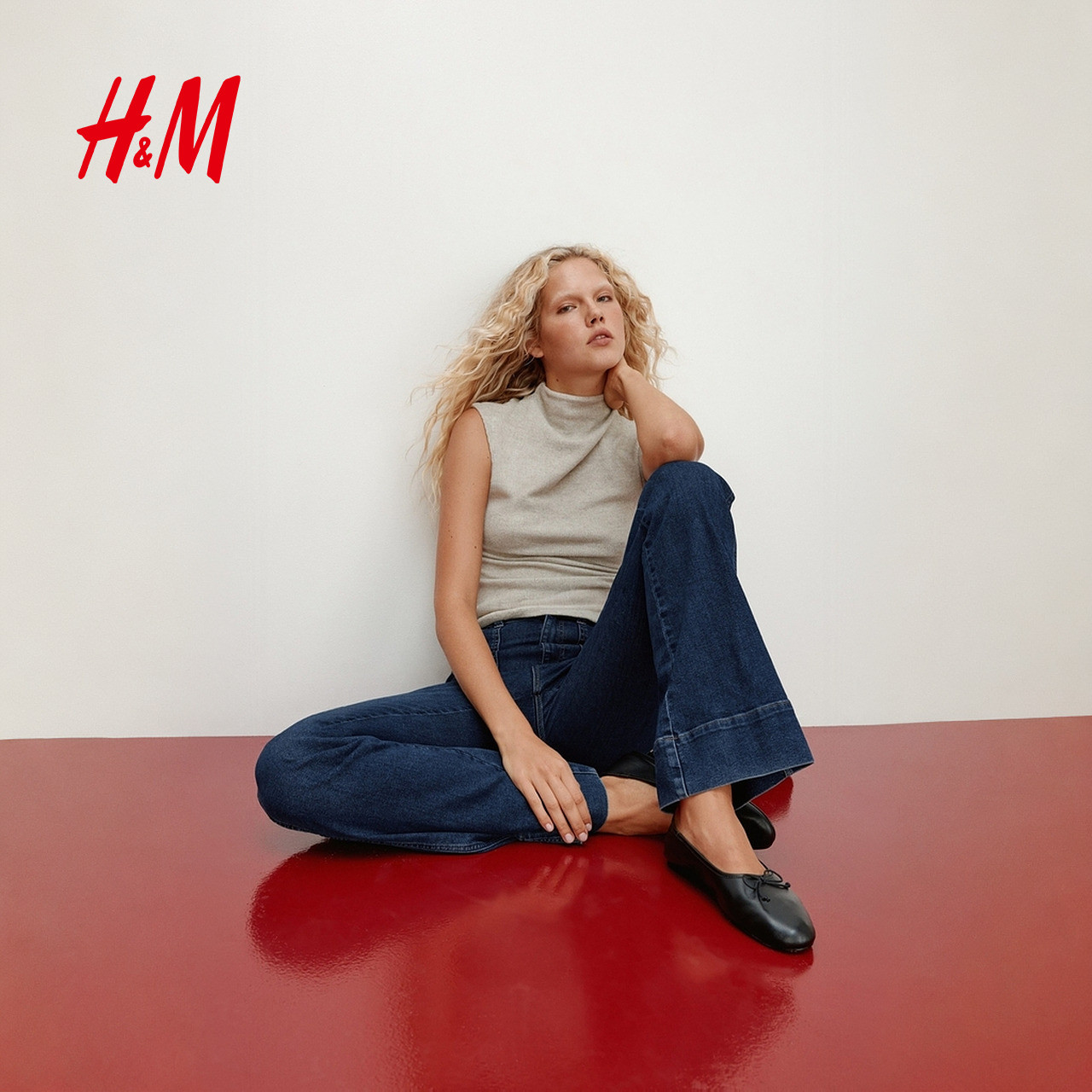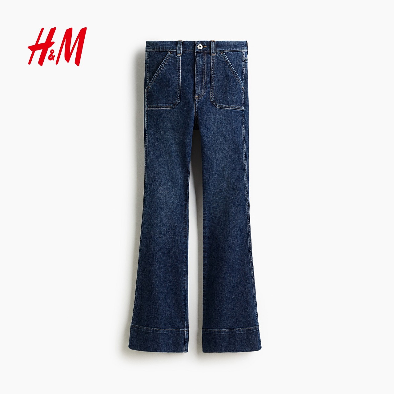 HM女装牛仔裤2025新款微紧身牛仔裤高腰喇叭外出潮流长裤1306175