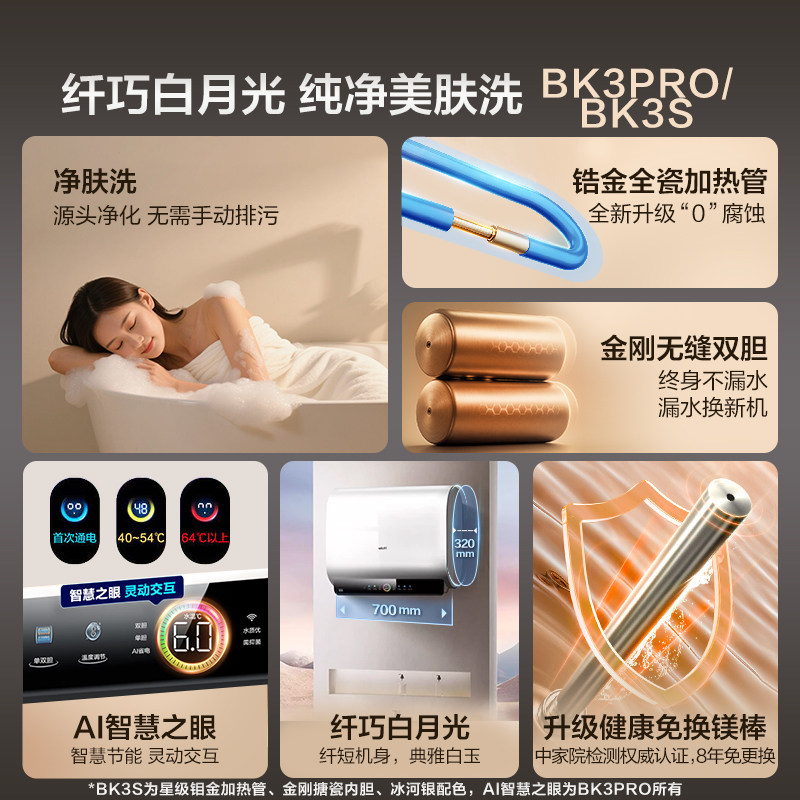 [政府换新补贴]海尔BK3pro魔盒扁桶电热水器家用电双胆净水洗白巧