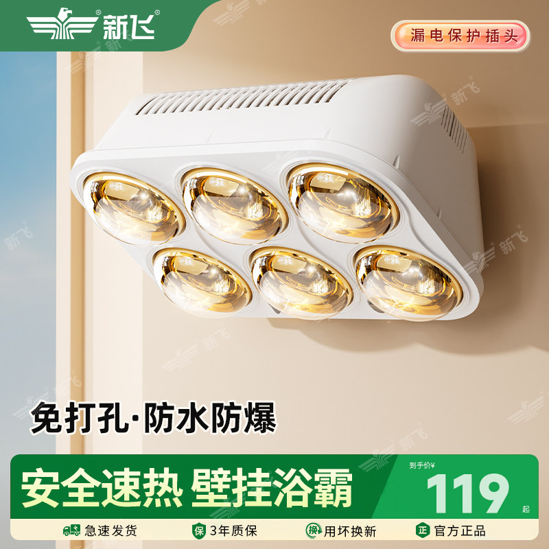 新飞双暖浴霸壁挂式暖灯卫生间挂墙防水防爆灯泡洗澡间老式取暖灯
