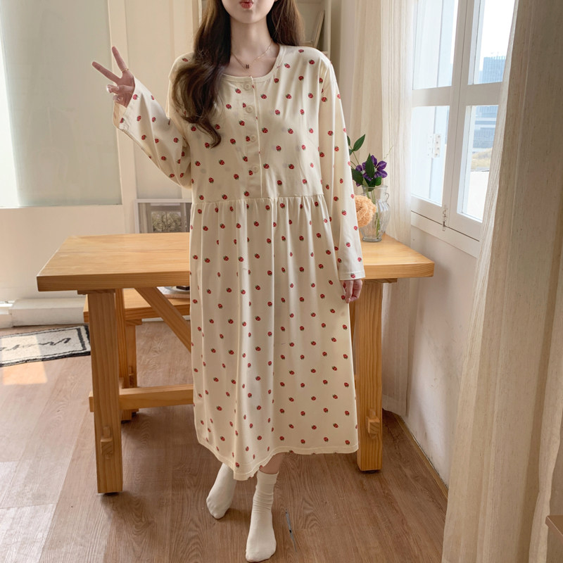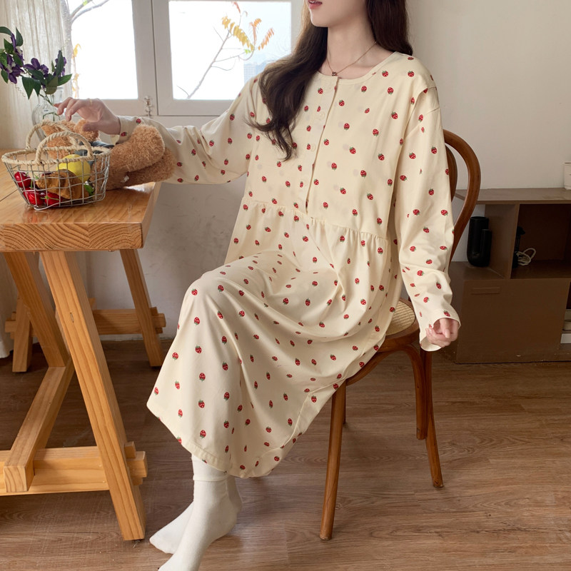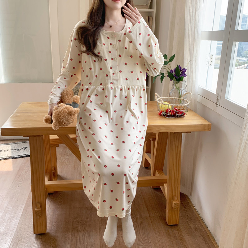 春秋纯棉带胸垫月子服医院待产裙产妇孕妇睡裙喂奶哺乳衣产前产后