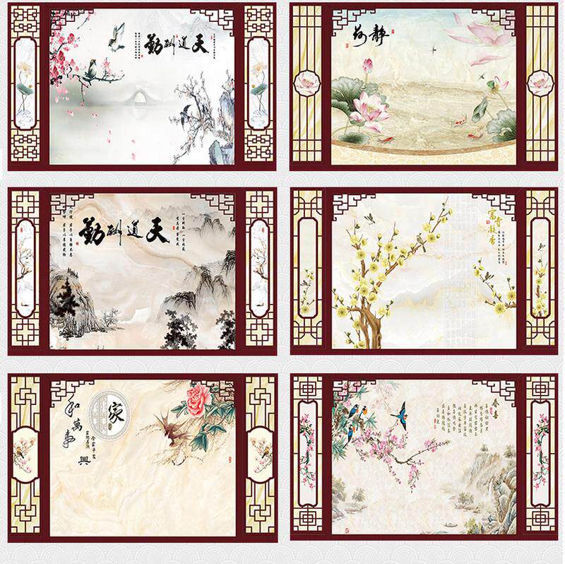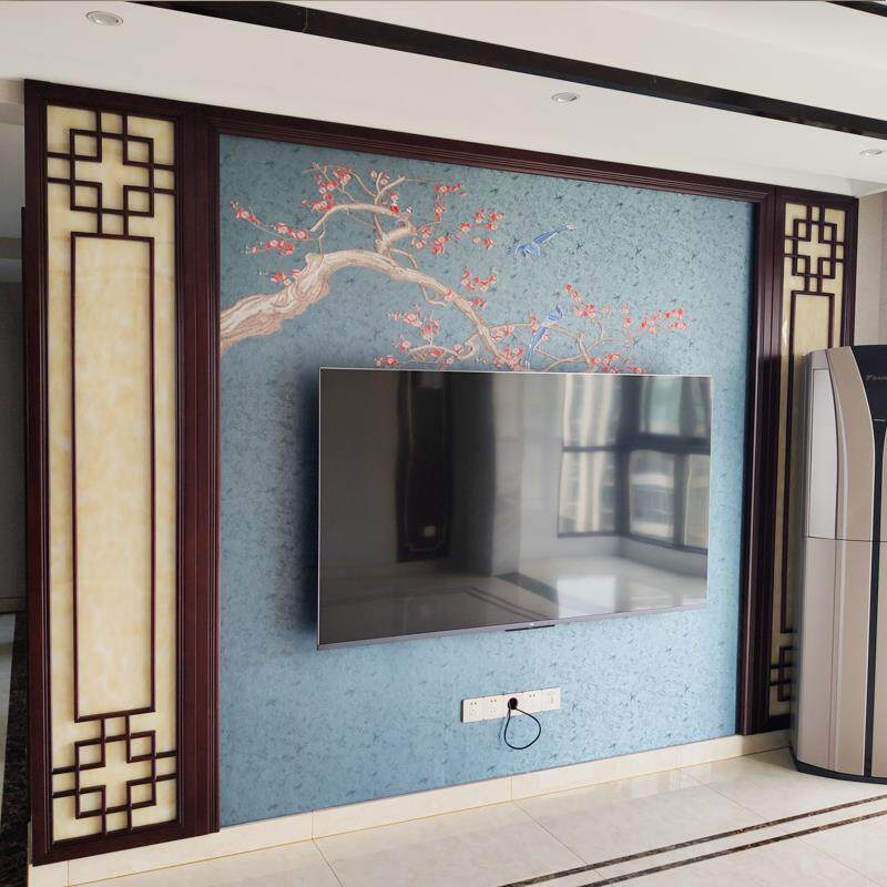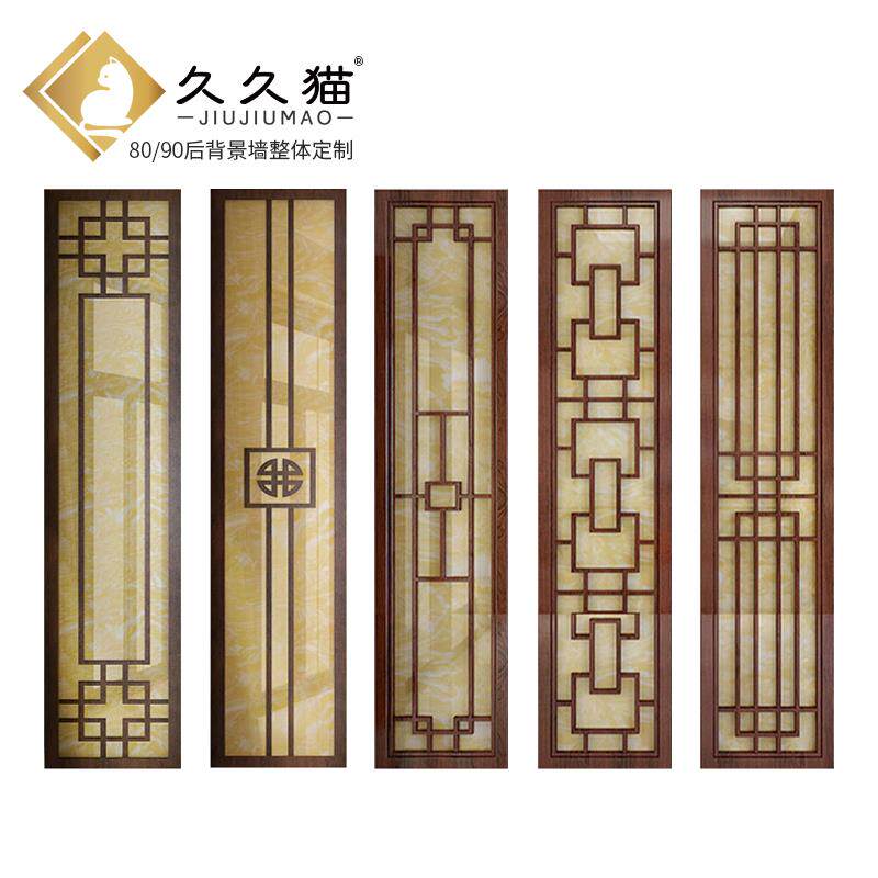 速发中式岩沙背景墙纯实木花格边厅客框板发仿古电视墙瓷砖影视墙