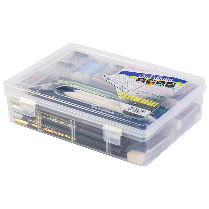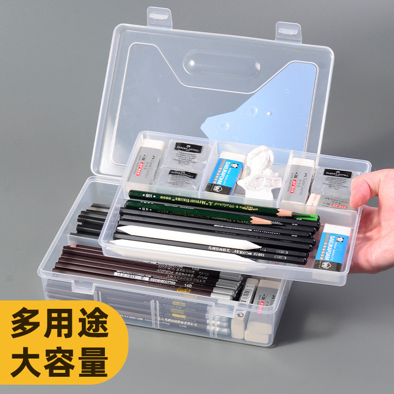 素描笔盒美术专用绘画用品画笔盒简约收纳透明塑料多功能卷笔帘