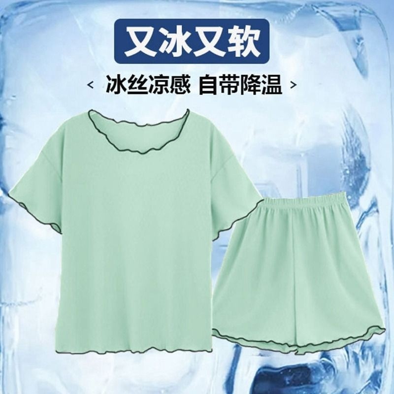 睡衣夏女2024年螺纹宽松大码甜美可外穿冰丝新款薄款短袖家居服