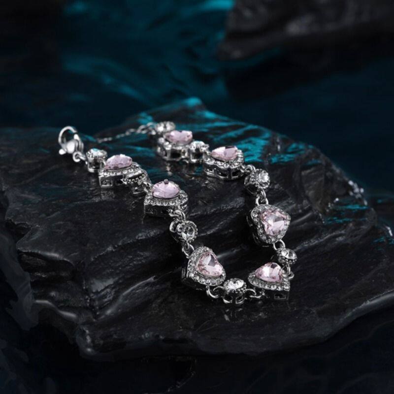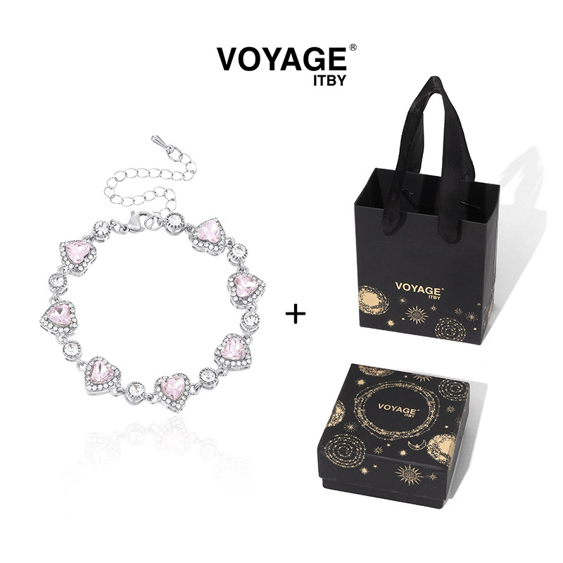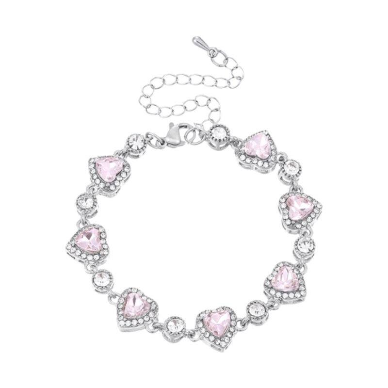 超闪粉色人造锆石手链女轻奢小众高级感手环高颜值学生党手镯手饰