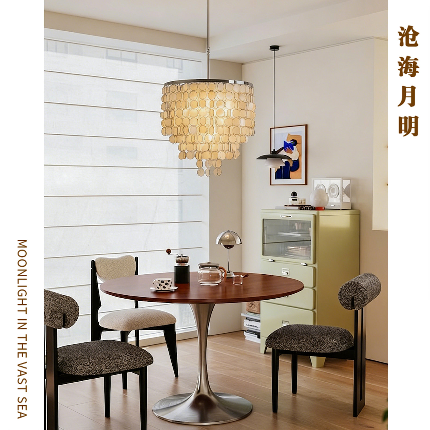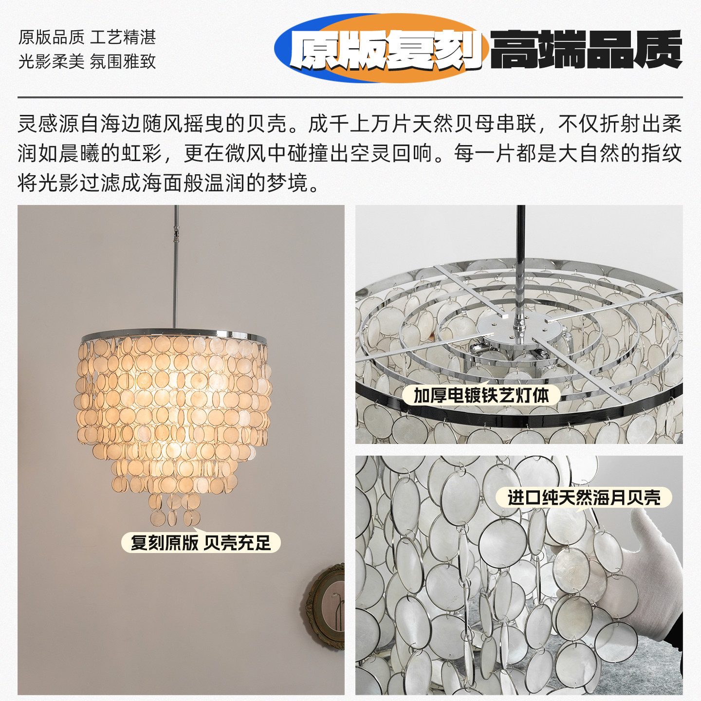 意大利法式奶油轻奢复古贝壳吊灯餐厅卧室美式北欧后现代风铃灯具