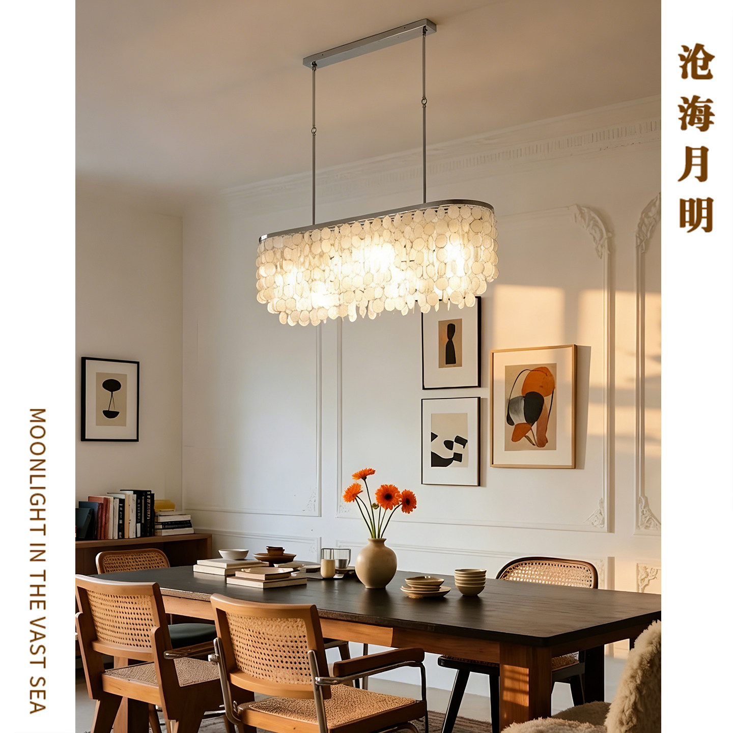皓月餐厅吊灯原版复刻茶室简约岛台吧台餐桌高端一字长条灯具