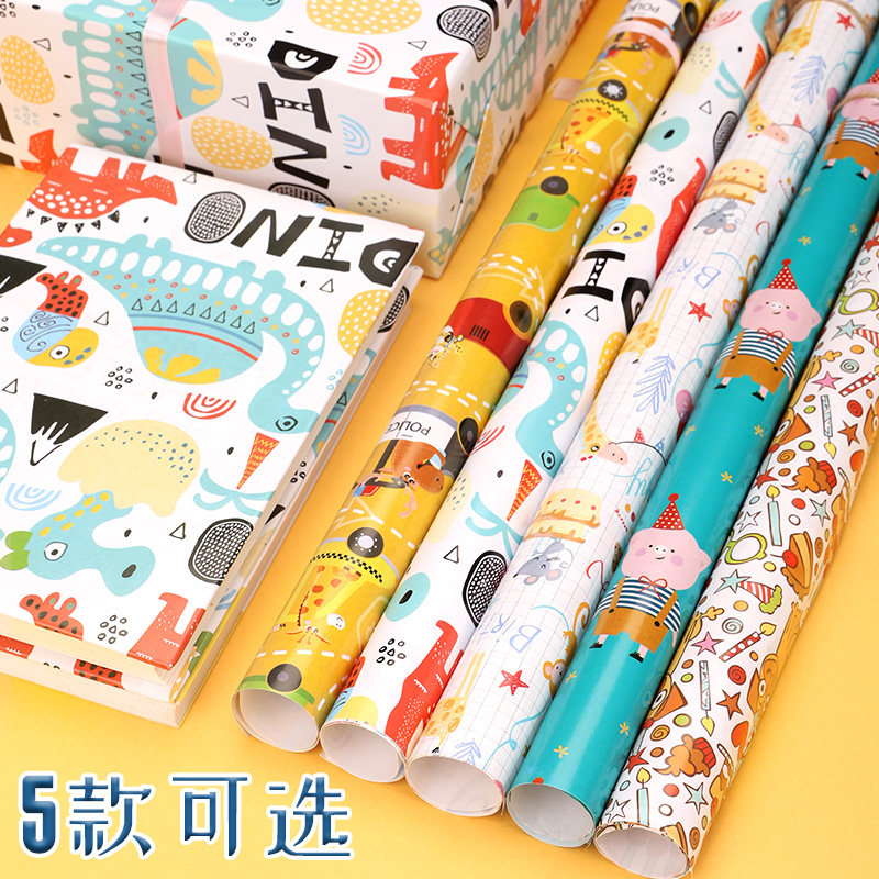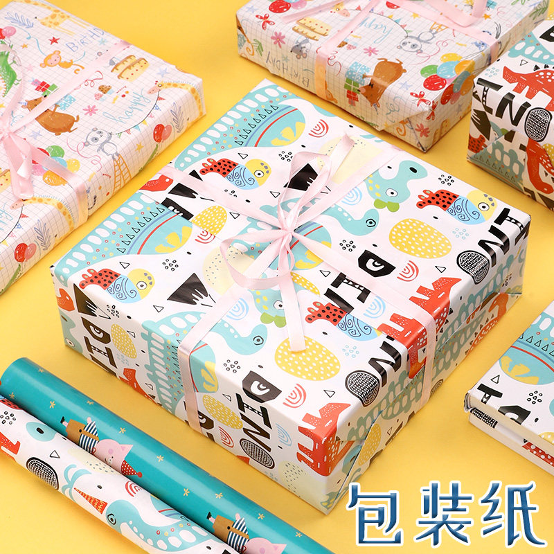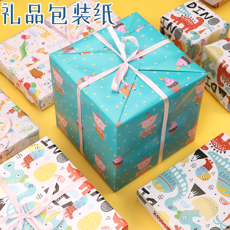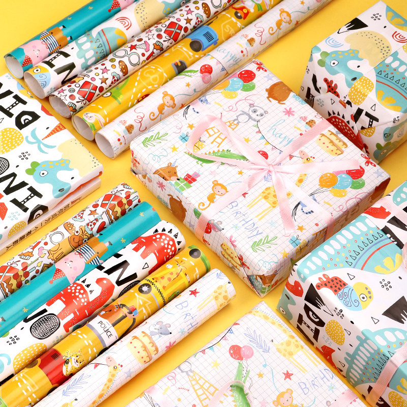 礼物包装纸礼品纸儿童生日礼物纸圣诞节新年礼盒包装纸超大尺寸高级感加丝带打包礼物的彩纸可爱卡通彩色