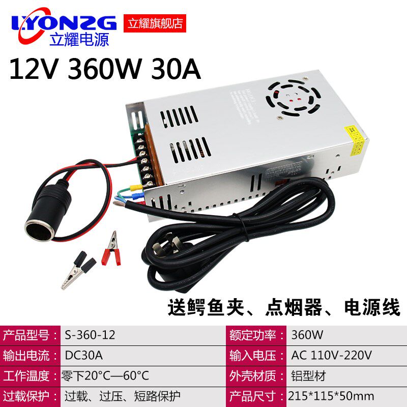 220V转12V电源转换器逆变汽车载CD音响低音炮充气泵改家用变压器