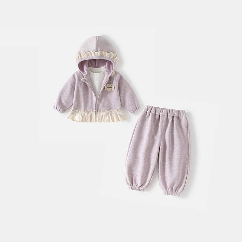 班喜迪女童套装春装新款儿童上衣裤子宝宝开衫卫衣春季小童装时尚