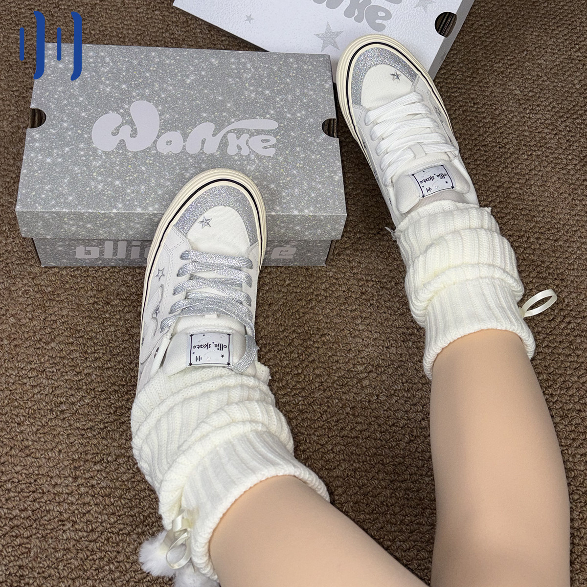 顽刻官方满天星亮晶晶银白星星W系列冬季休闲低帮男女国潮滑板鞋